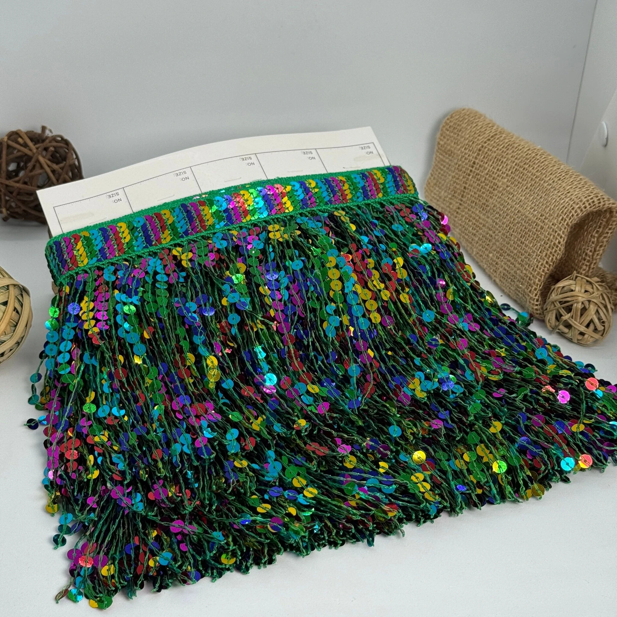 Бахрома танцювальна з паєтками 16 см (10 ярдів/9,14 м.), 13 кольоровий зелений