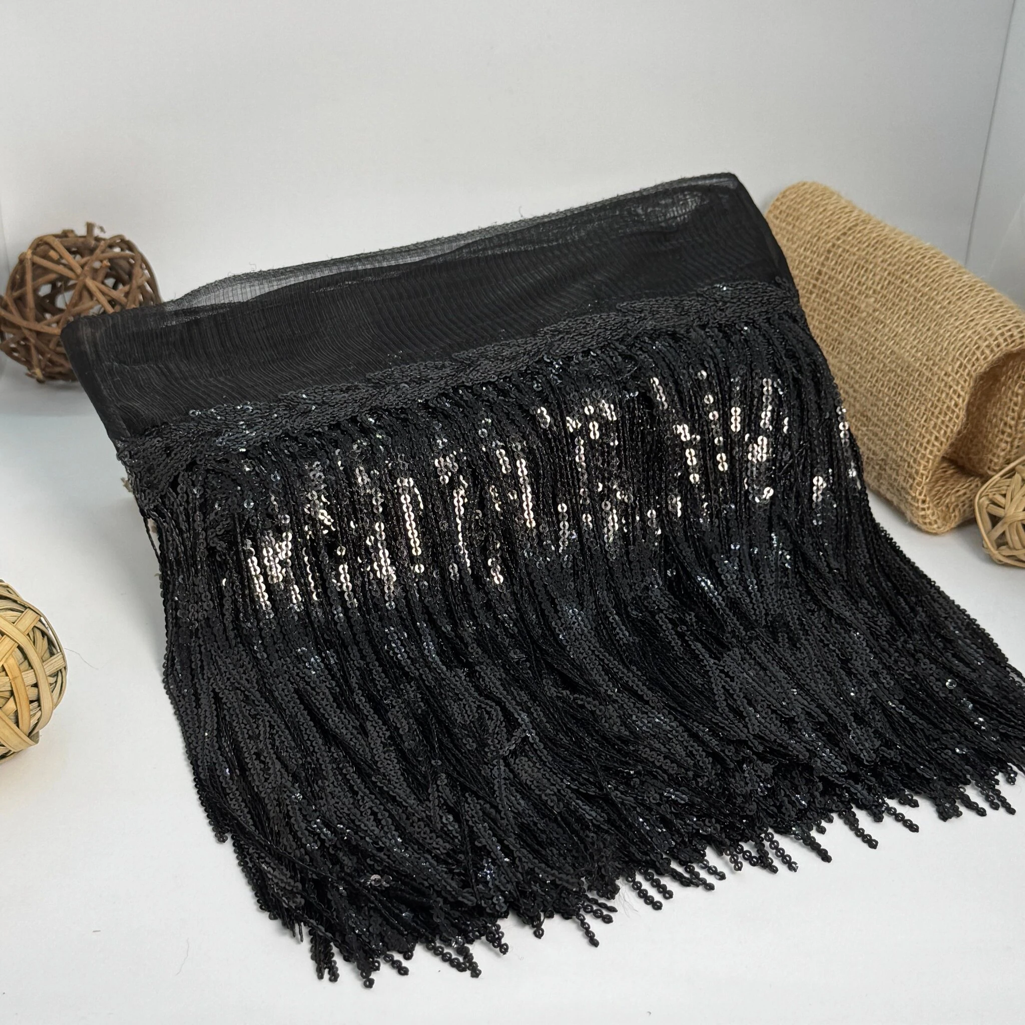 Бахрома танцювальна з паєткою 20 см (10 ярдів/9,14 м.), 1 чорний
