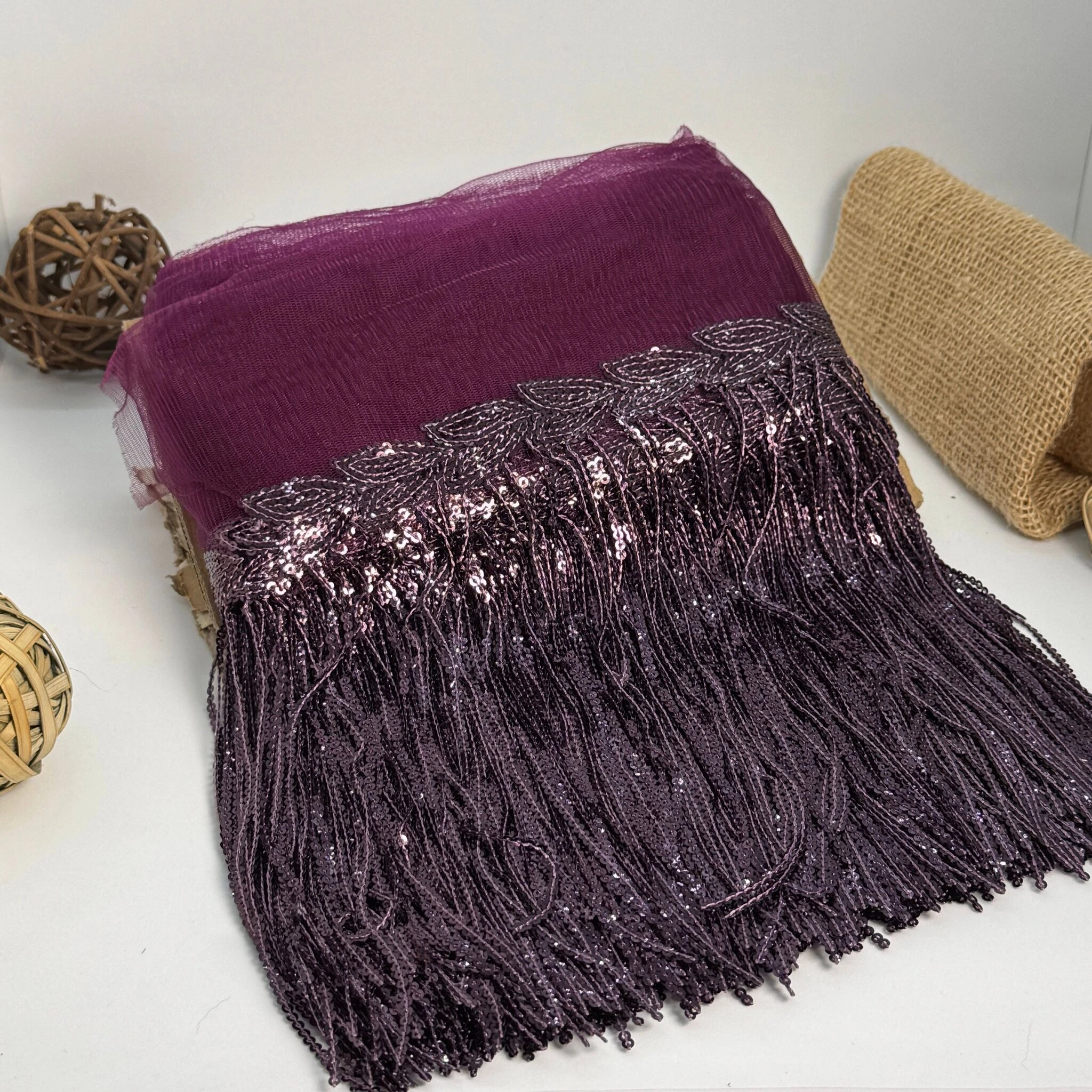 Бахрома танцювальна з паєткою 20 см (10 ярдів/9,14 м.), 17 темний фіолетовий