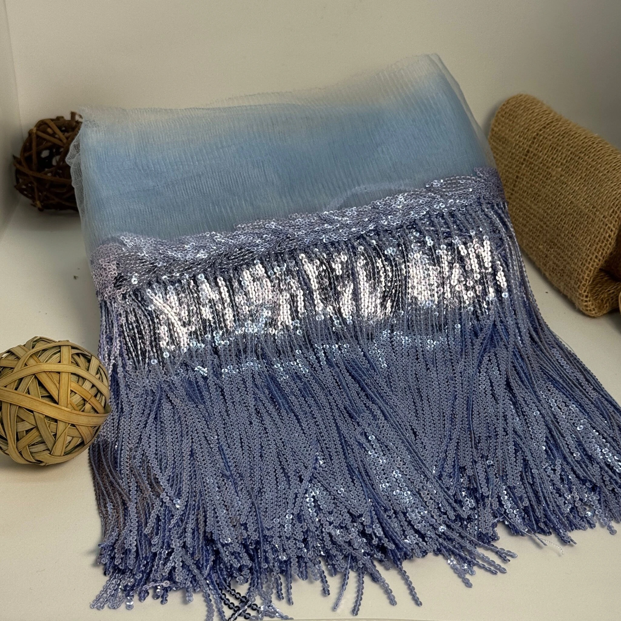 Бахрома танцювальна з паєткою 20 см (10 ярдів/9,14 м.), 29 блакитний
