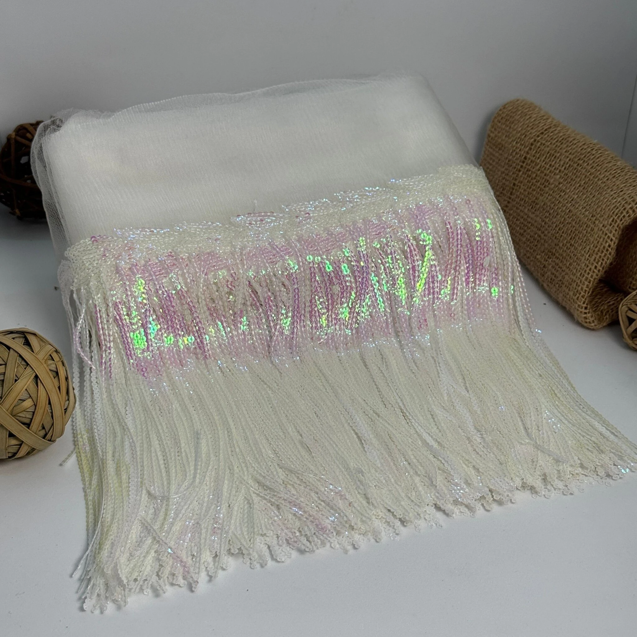 Бахрома танцювальна з паєткою 20 см (10 ярдів/9,14 м.), 32 білий перламутр