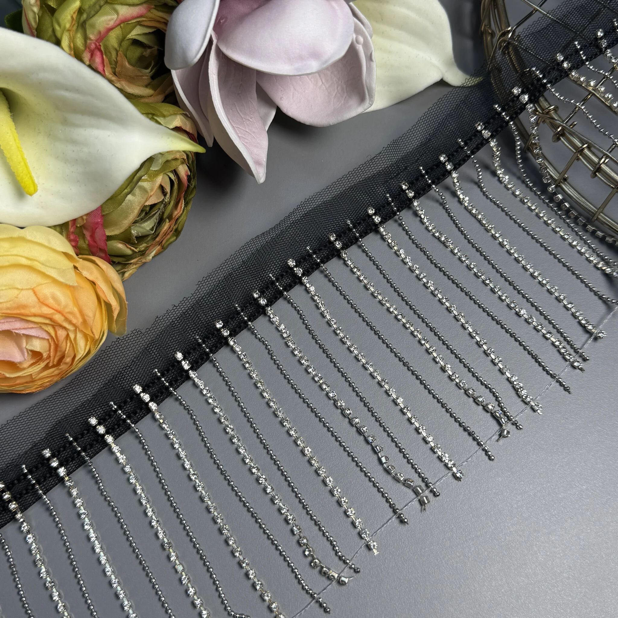 Бахрома з камінням та кульками 9 см (23 м), чорний