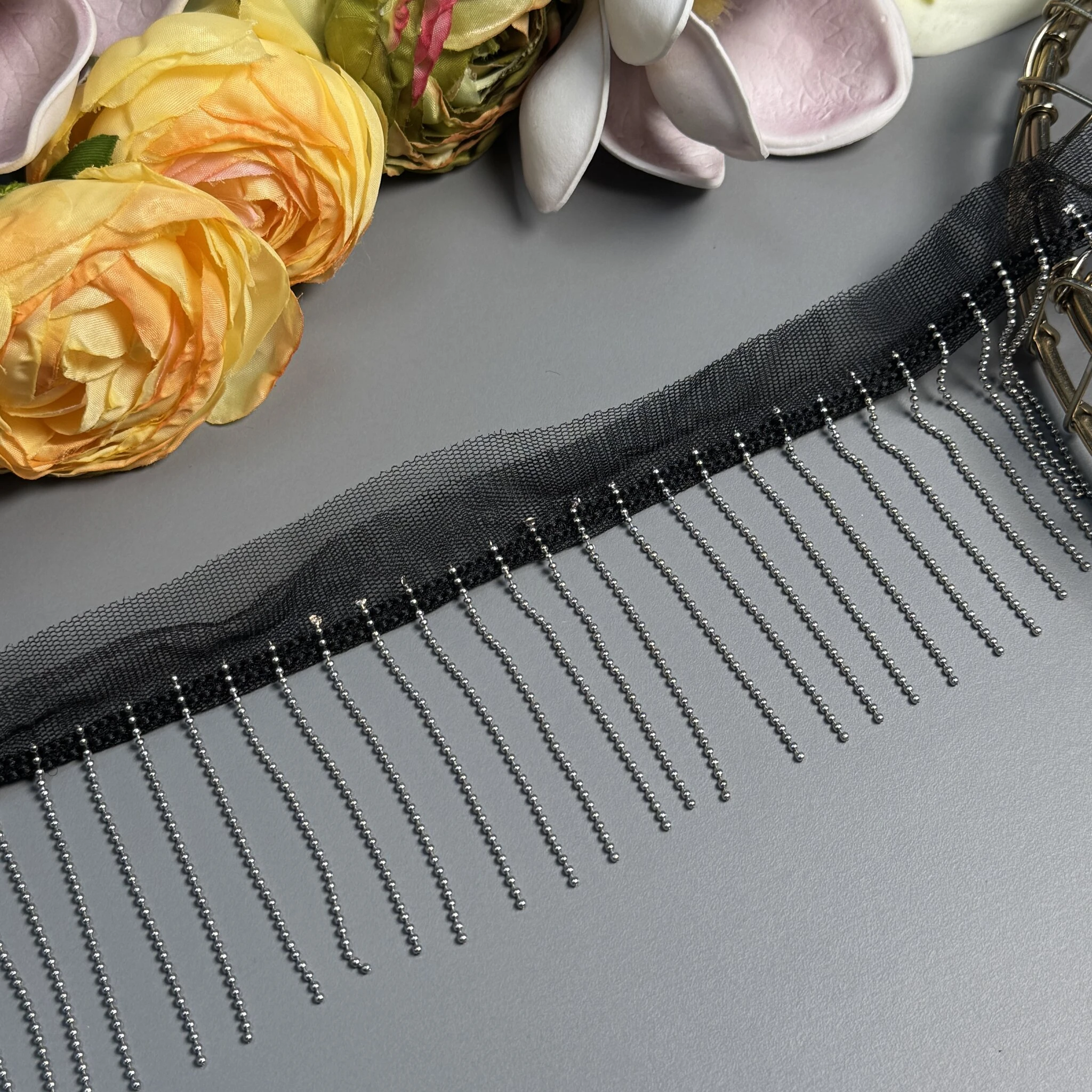 Декоративна бахрома з кульками, що красиво переливається на світлі та додає виробам святкового та ефектного вигляду. Ідеальна для сценічних костюмів, вечірніх суконь та hand-made виробів.