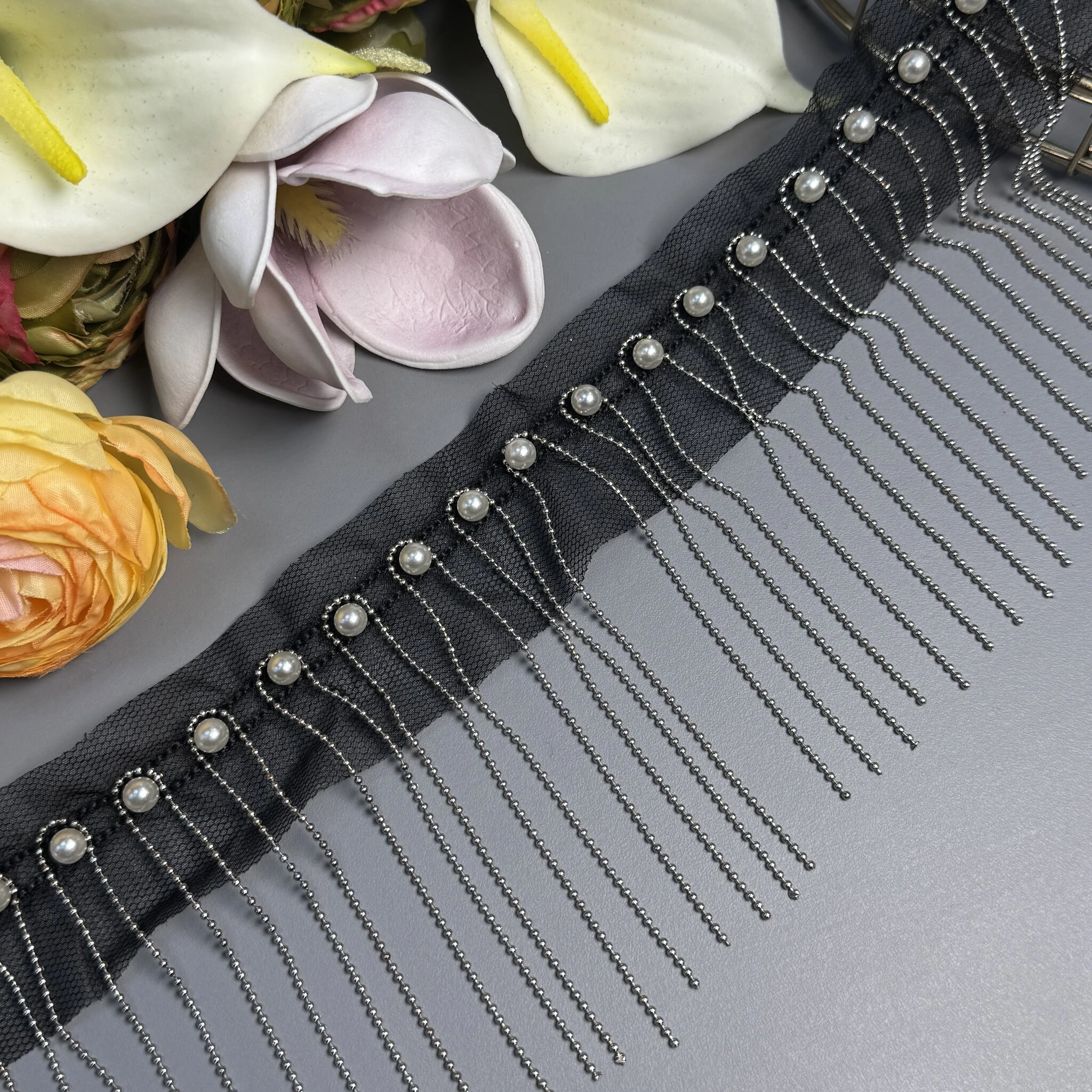 Бахрома з кульками та перлинами 9 см (23 м), чорний