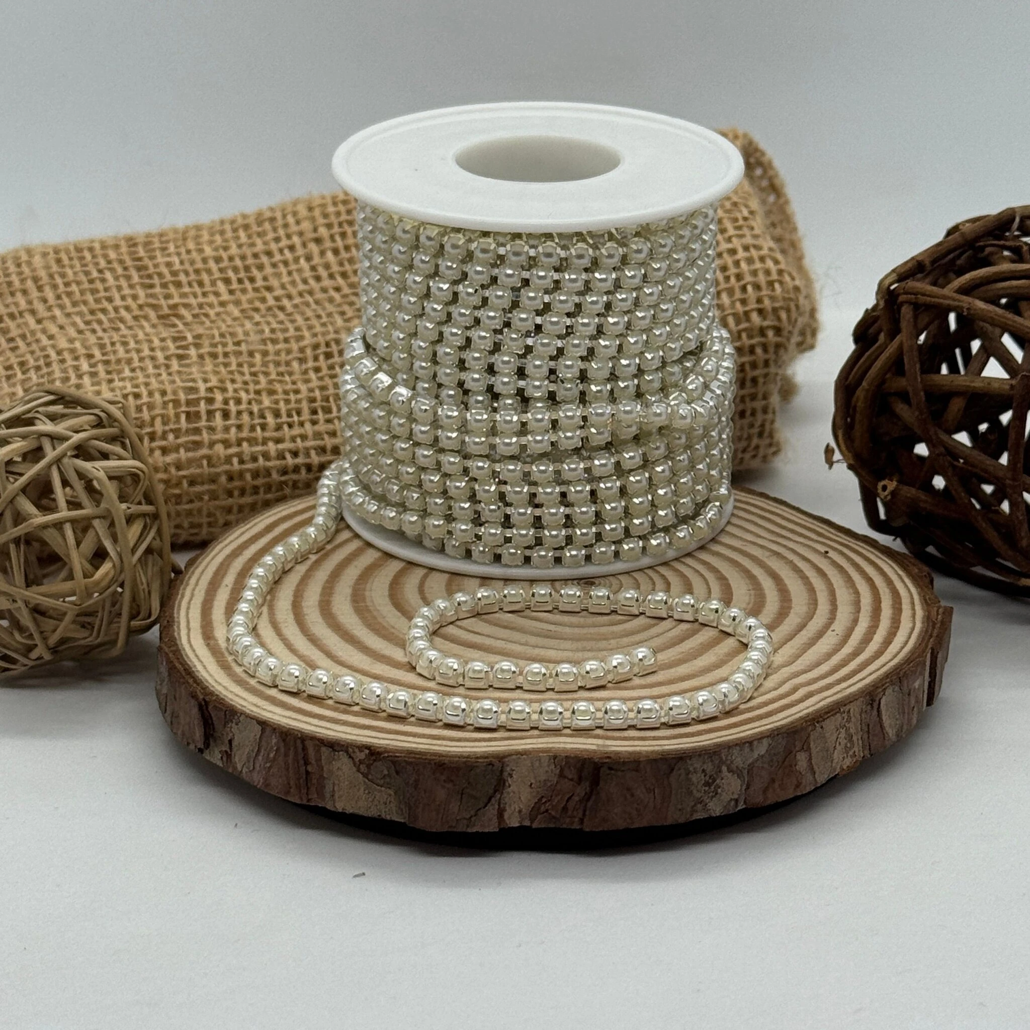 Цепі камні на бабінах з перлинами ss 16 4 мм (10 ярдів), срібло