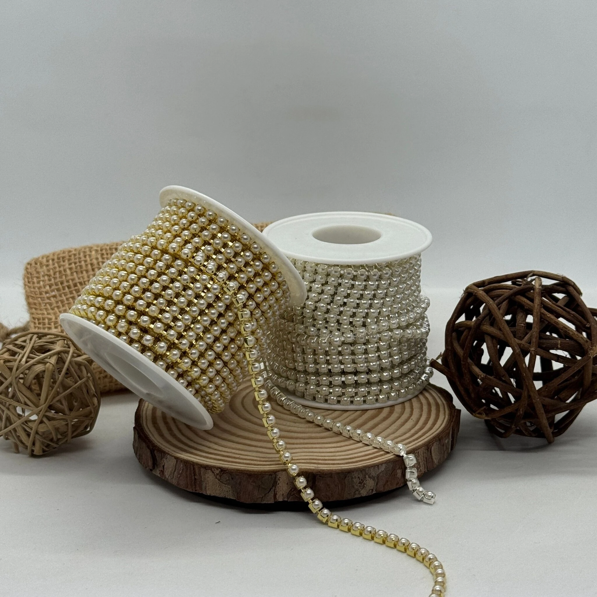 Цепі з каменями SS16 (4 мм) перлина – декоративні металеві ланцюжки з вбудованими перлинними камінцями діаметром 4 мм, які створюють елегантний і блискучий ефект. Вони ідеально підходять для прикрашання одягу, аксесуарів та декоративних виробів, додаючи виробам витонченості та святкового вигляду.