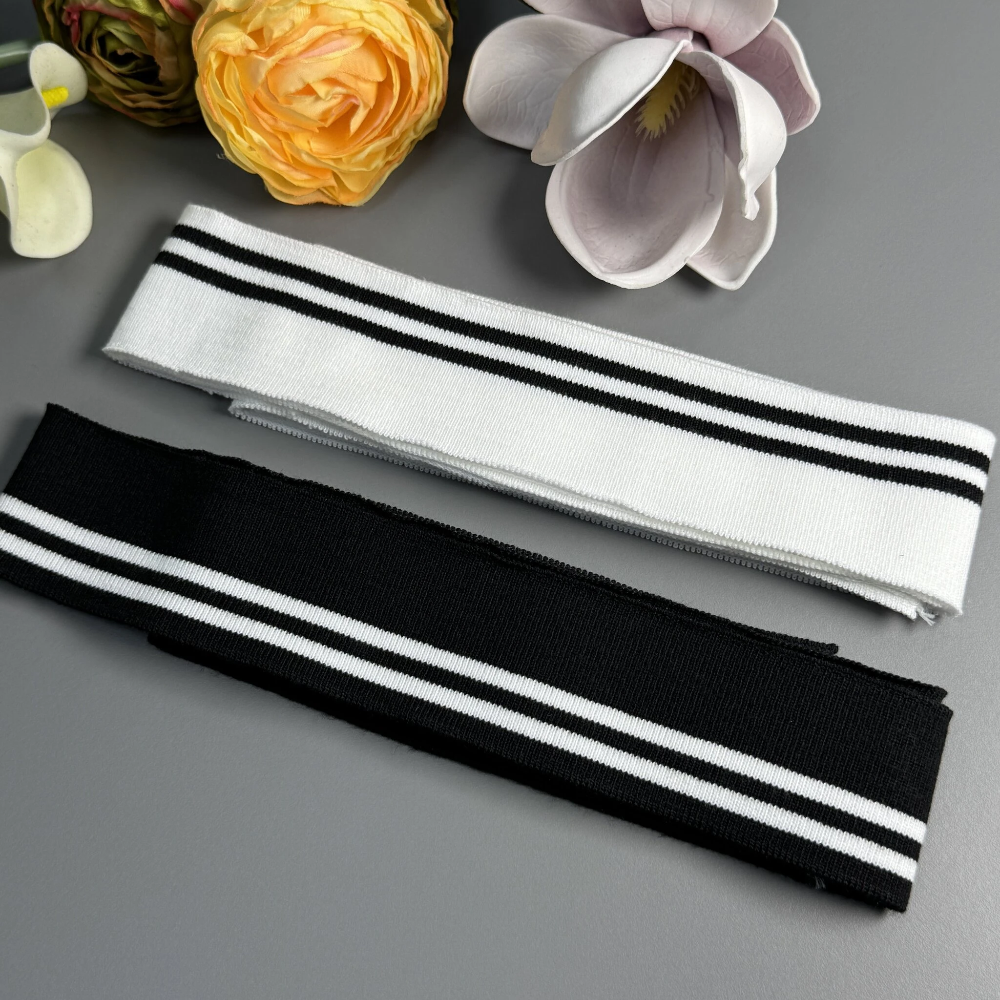 Довяз трикотажний бавовняний (4 см*120 см), чорний+білий
