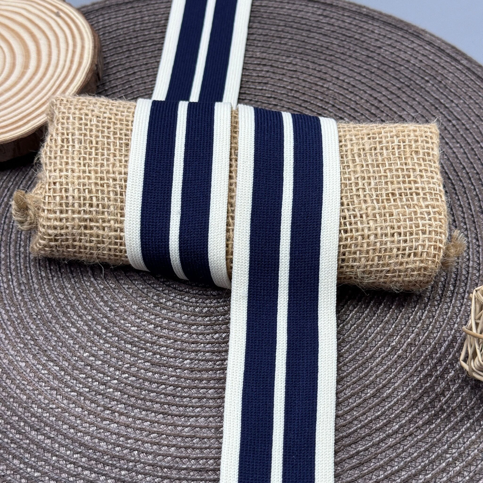 Лампас трикотажний 4 см (40 м), білий+синій