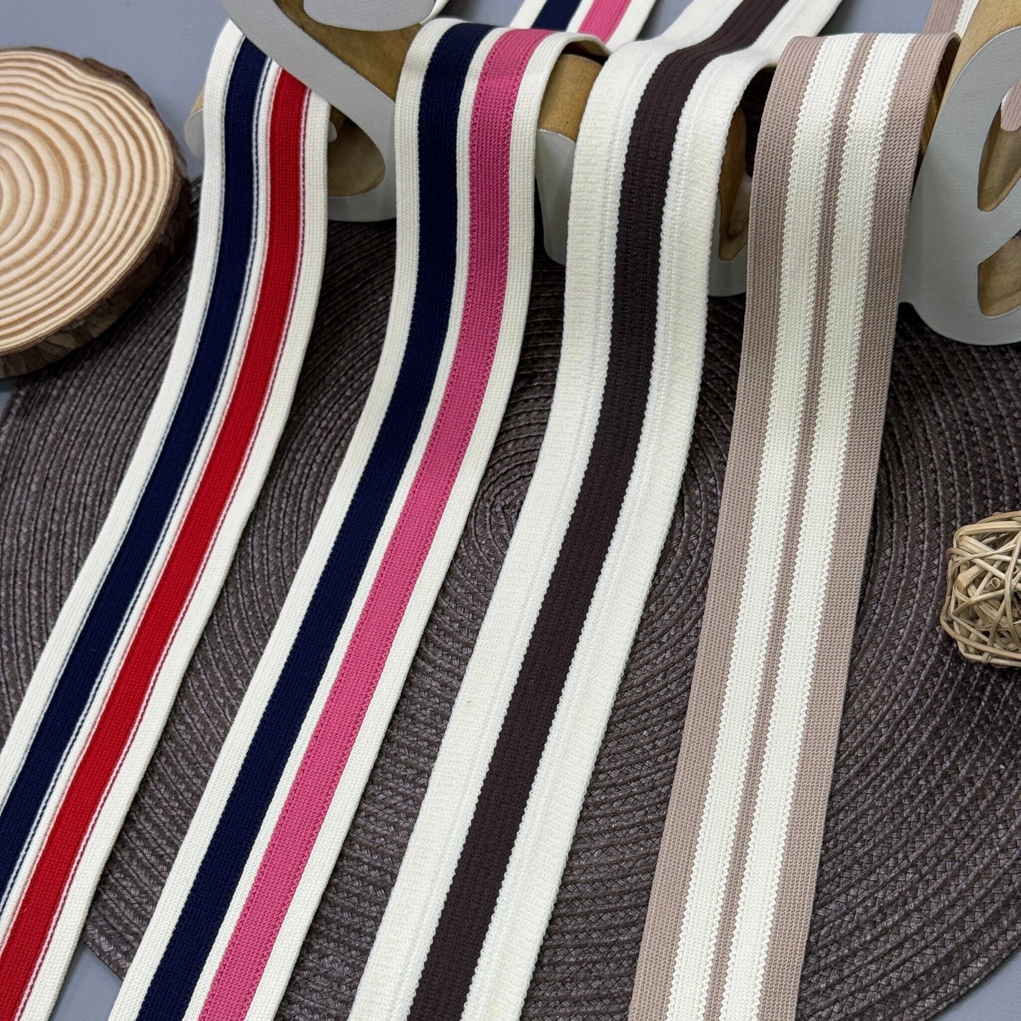Лампас трикотажний D#4-1 4 см (50 м), C:7 темно коричневий+молочний