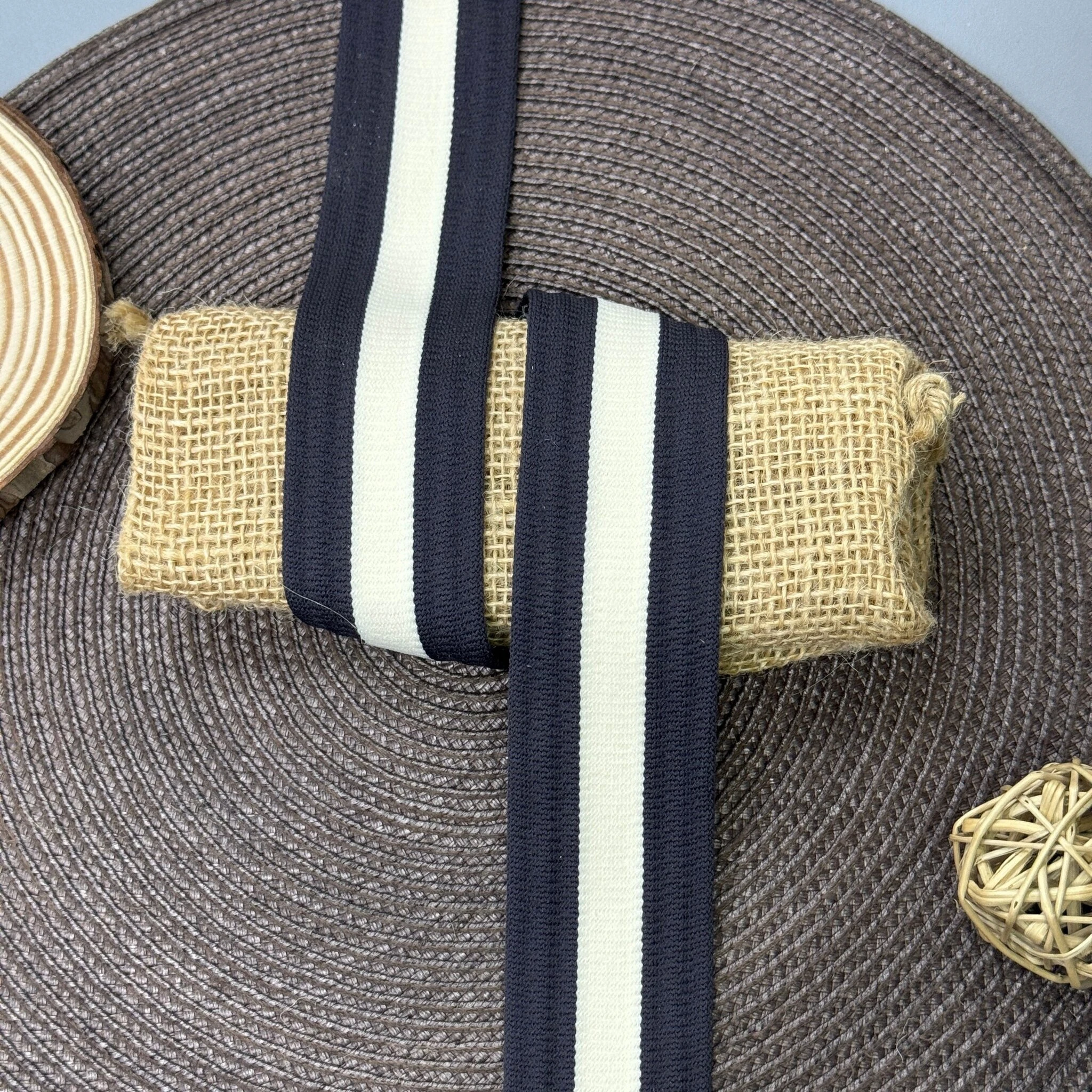 Лампас трикотажний D#4-1 4 см (50 м), C:8 молочний+темно сірий