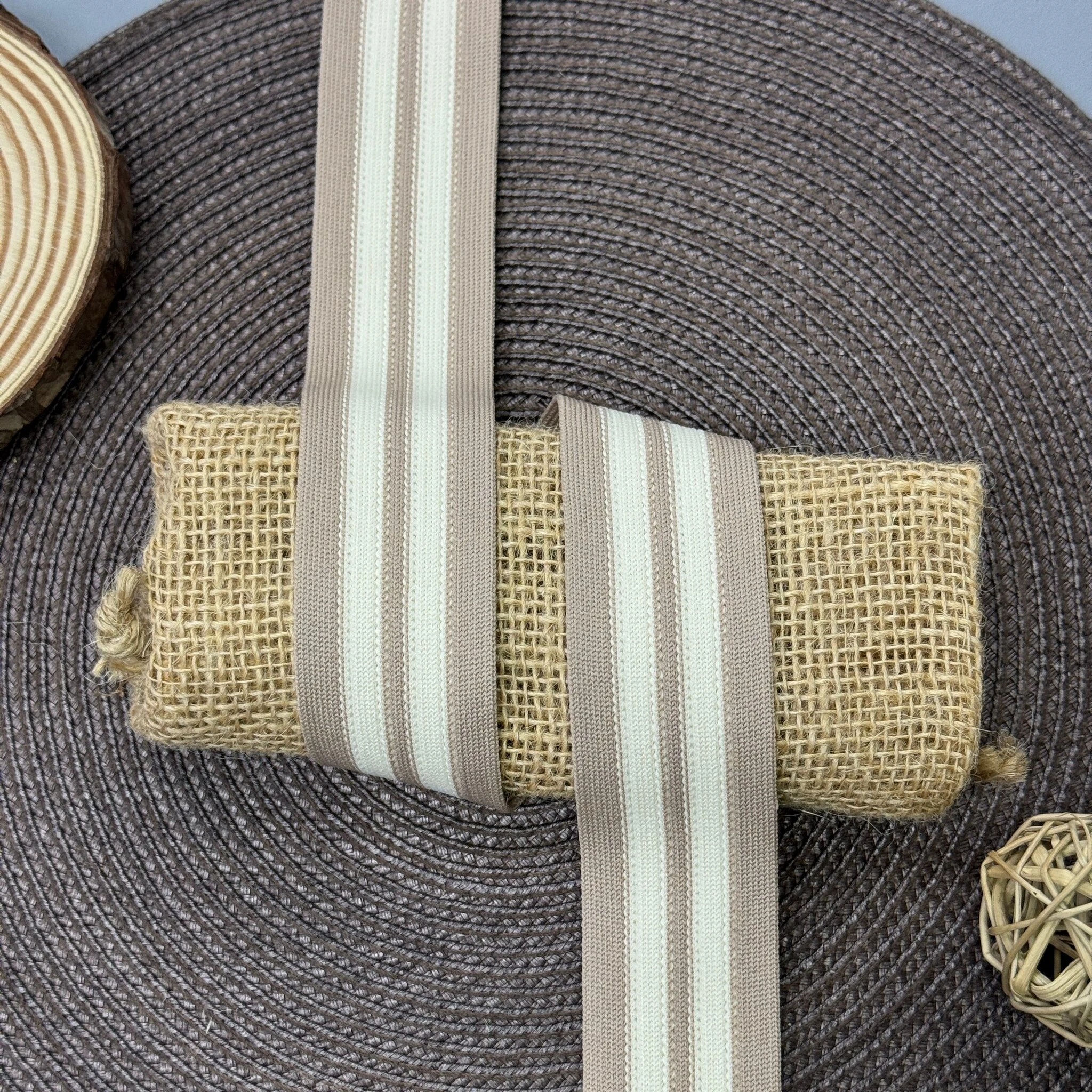 Лампас трикотажний D#4-1 4 см (50 м), C:9 молочний+світло сірий