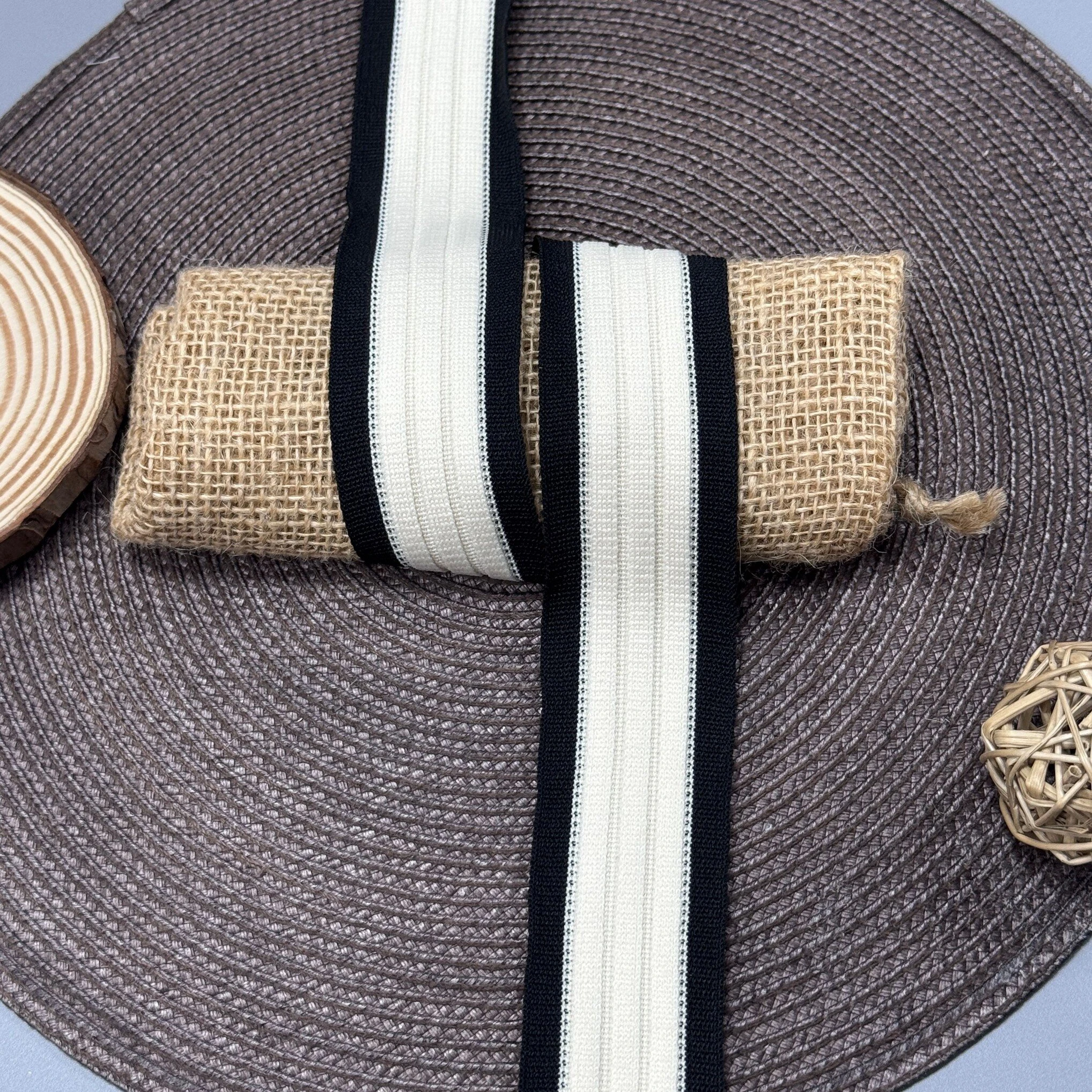Лампас трикотажний D#4 4 см (50 м), C:5 молочний+чорний