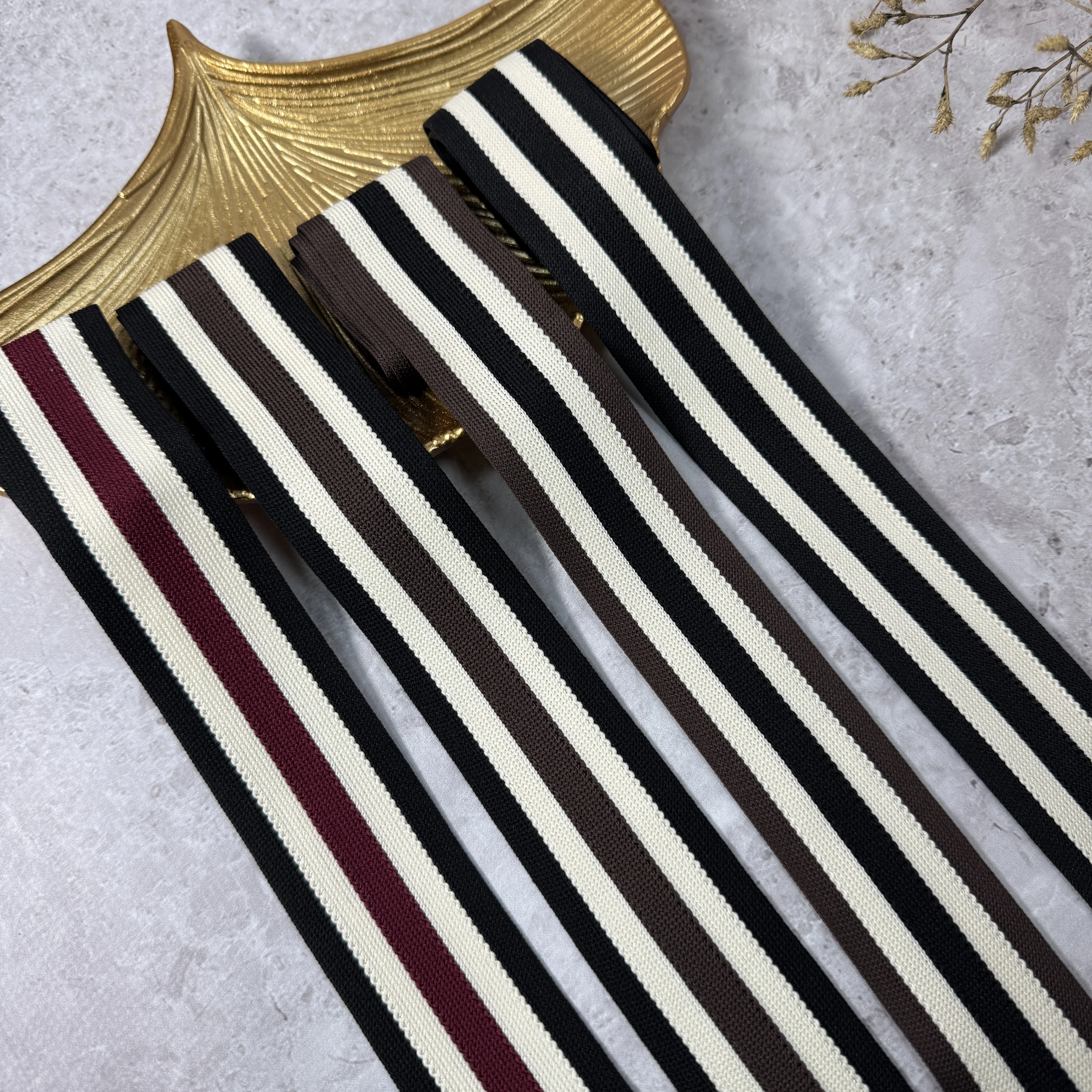 Трикотажний лампас з дизайном «5 ліній», призначений для оптових закупівель та серійного пошиття одягу. Має еластичну структуру, зручний у роботі, добре тягнеться та зберігає форму після прання. Стабільна якість підходить для швейного виробництва.