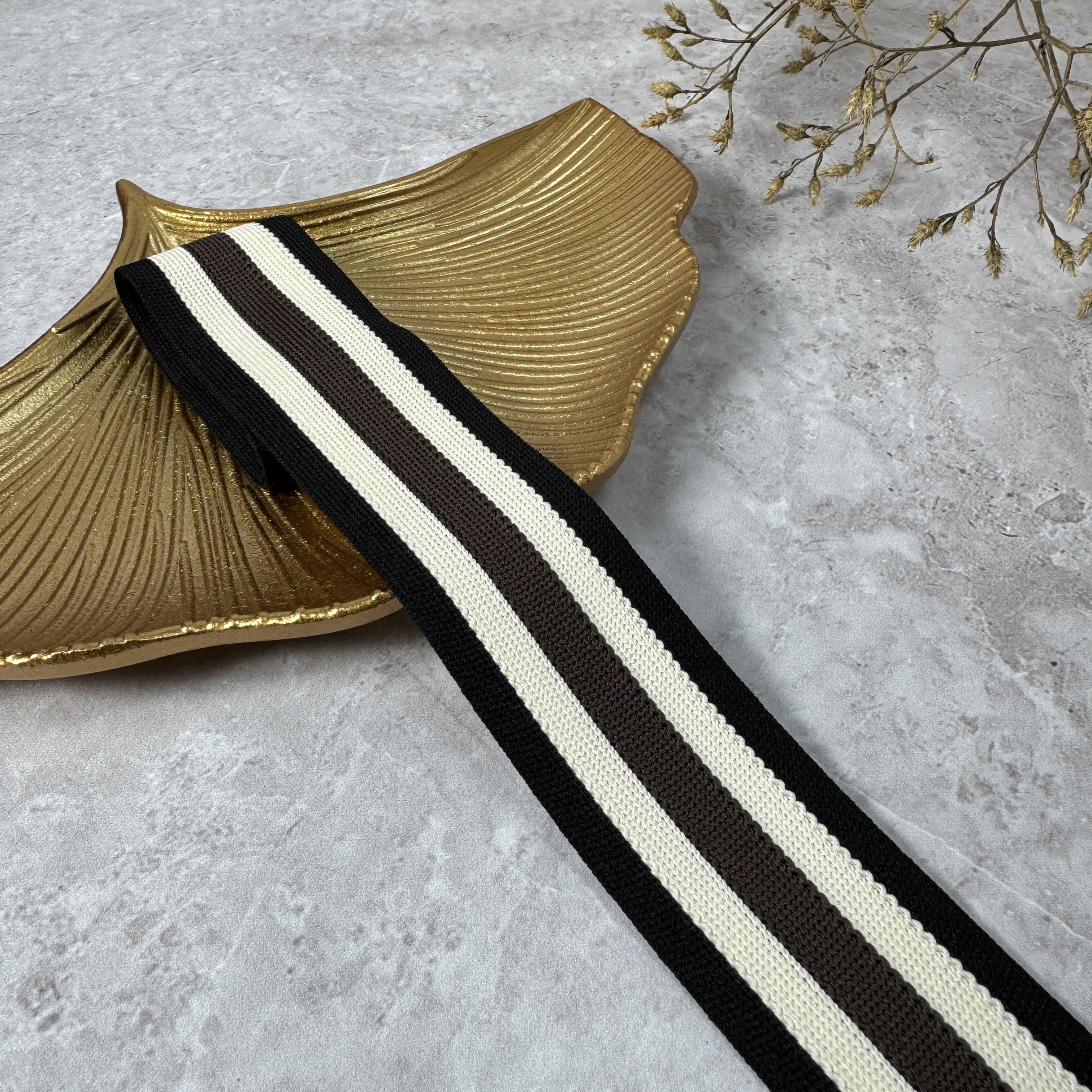 Лампас трикотажний 4 см «5 ліній»(50 м), чорний+темний шоколад