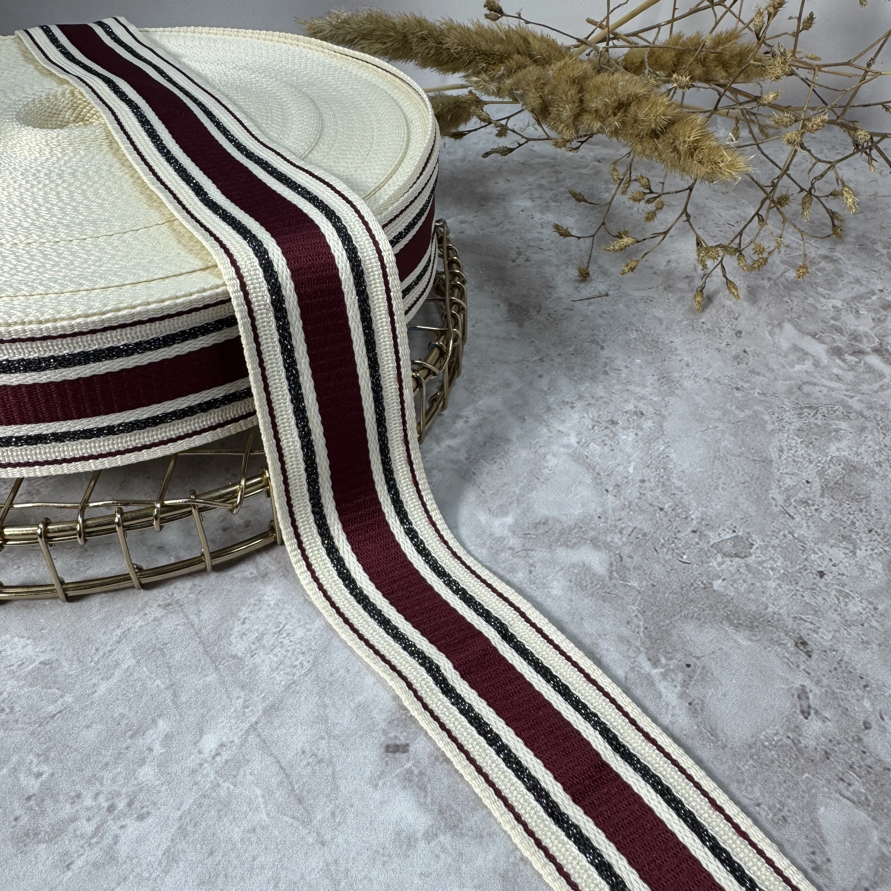 Лампас трикотажний 4 см «Mono Line» (50 м), бордо+молочний підійде для пошиття одягу, декору, білизни, аксесуарів та творчих проєктів. Допоможемо з підбором суміжних позицій і кольорів.
