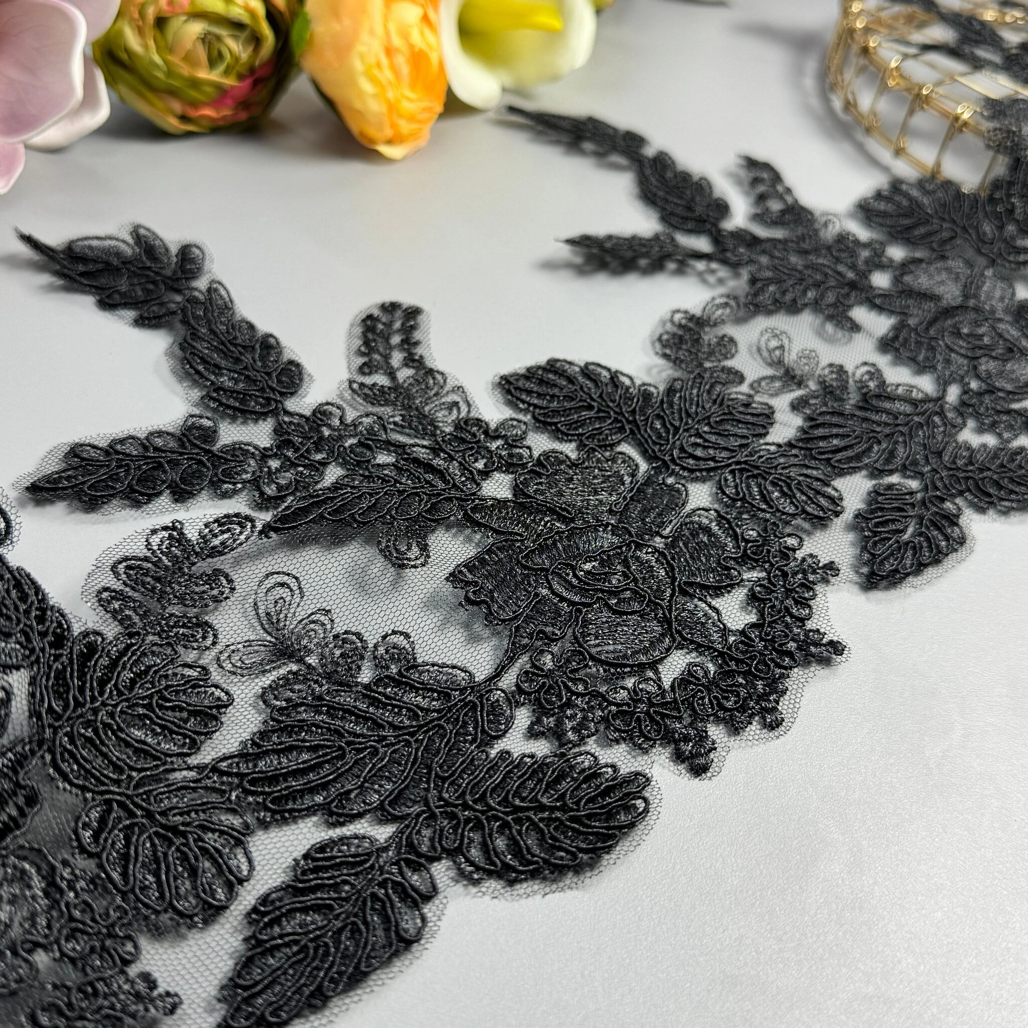 Мереживо з кордовою ниткою – це вишуканий матеріал, у якому ніжний візерунок додатково підкреслений тонкою рельєфною ниткою. Завдяки цьому мереживо виглядає більш об’ємним, фактурним та елегантним.