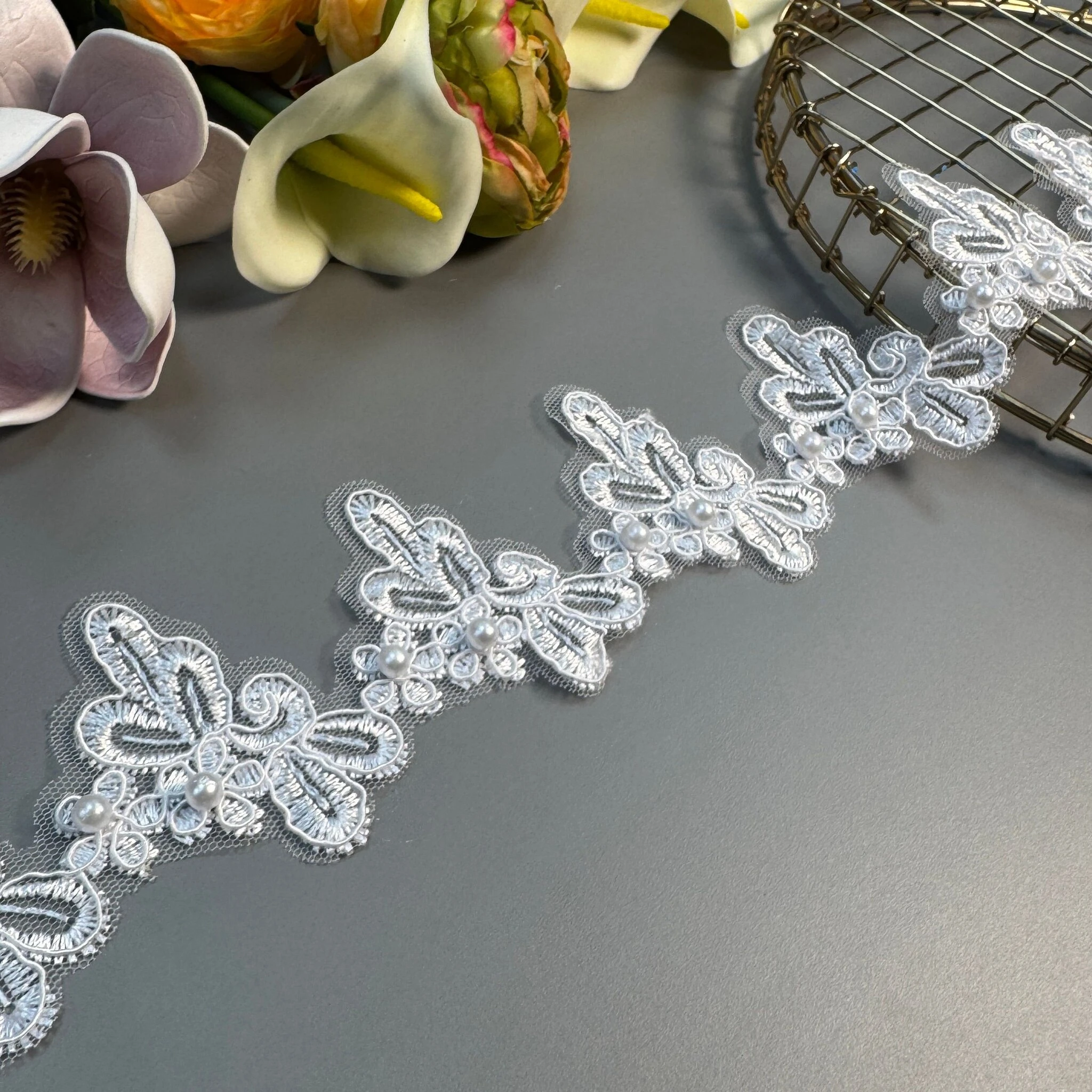 Мережево з кордовую ниткою Т600013А+перли 6 см. (16 ярдів/14.6 м.), білий
