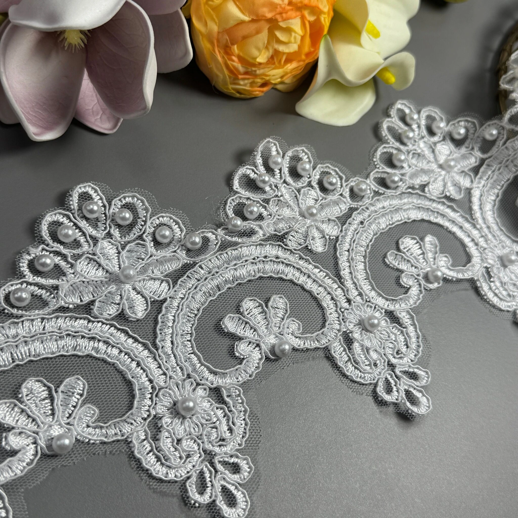 Мережево з кордовую ниткою Т600017А+перли 13 см. (16 ярдів/14.6 м.), білий