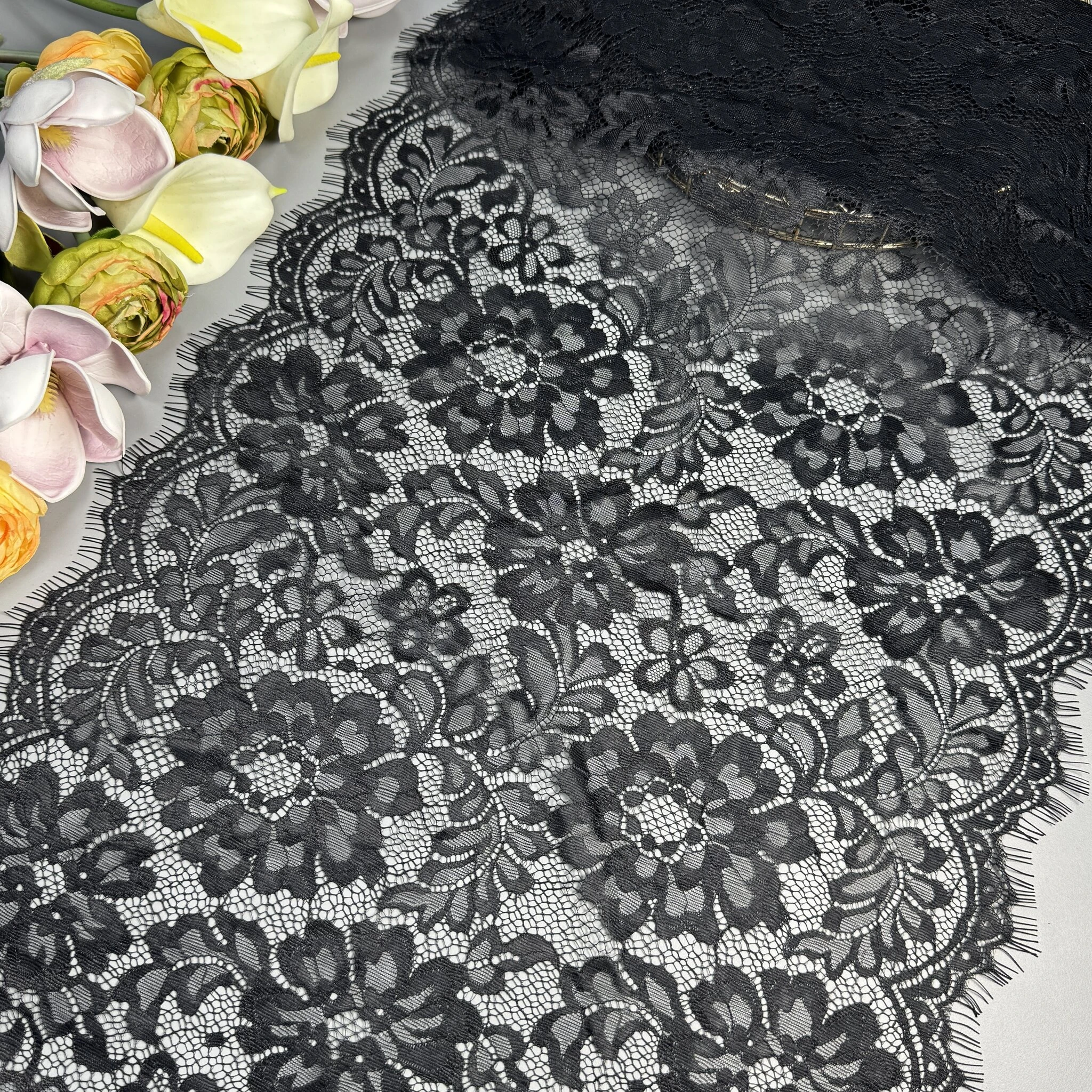Це мереживо цінується кутюр’є в усьому світі за свою естетику, легкість і бездоганну деталізацію. Французьке мереживо — це не просто тканина, а справжнє мистецтво, яке надає кожному виробу унікального шарму та розкоші.
