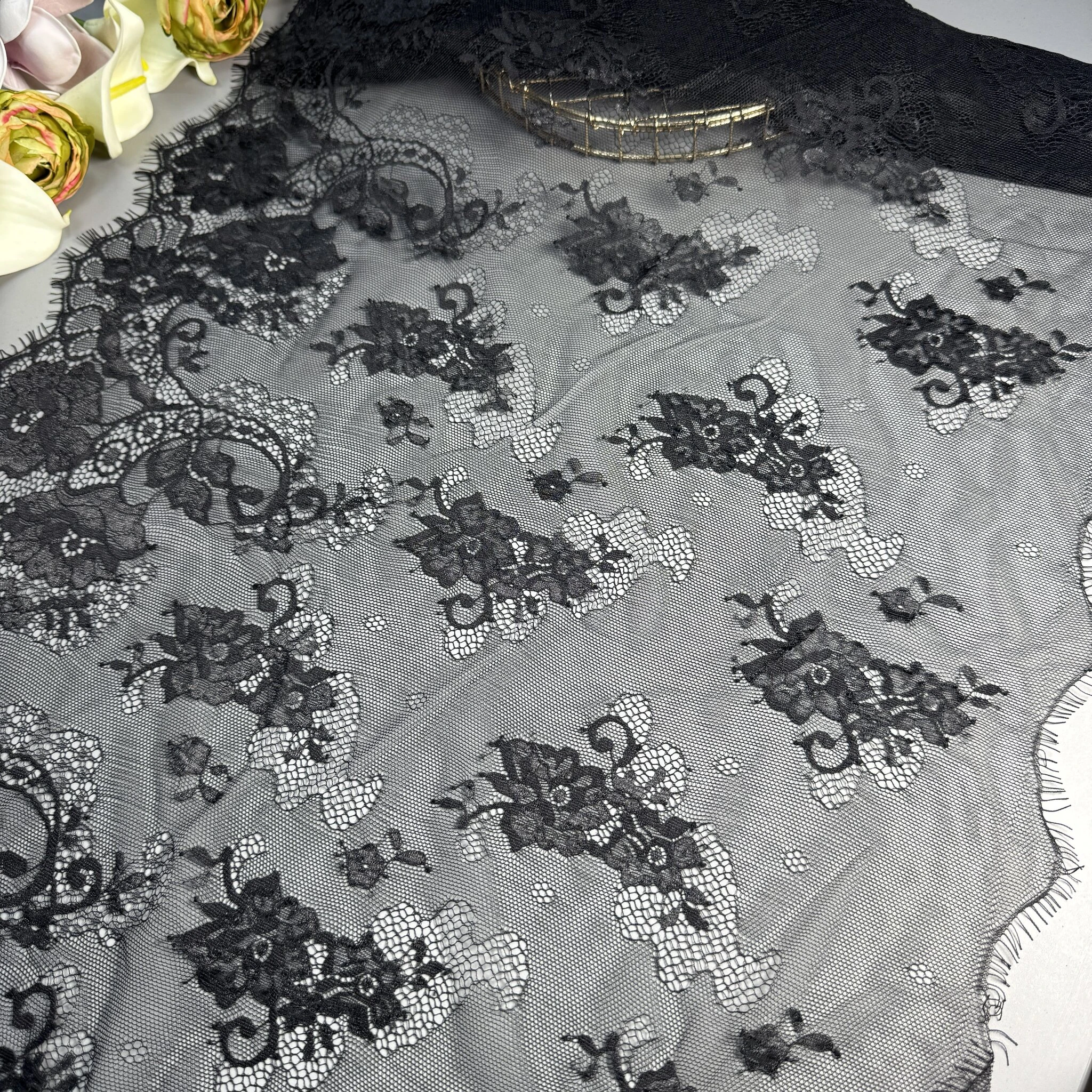 Це мереживо цінується кутюр’є в усьому світі за свою естетику, легкість і бездоганну деталізацію. Французьке мереживо — це не просто тканина, а справжнє мистецтво, яке надає кожному виробу унікального шарму та розкоші.
