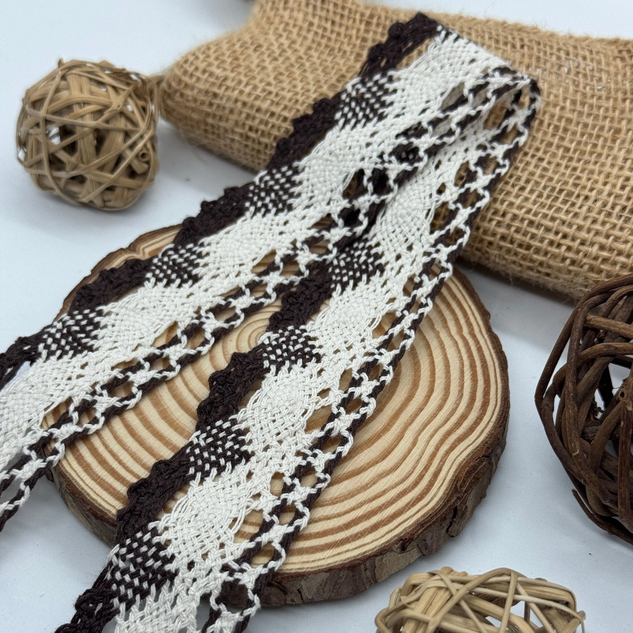 Мереживо макраме 5304 4 см (200 ярдів/182,8 м.), коричневий+бежевий