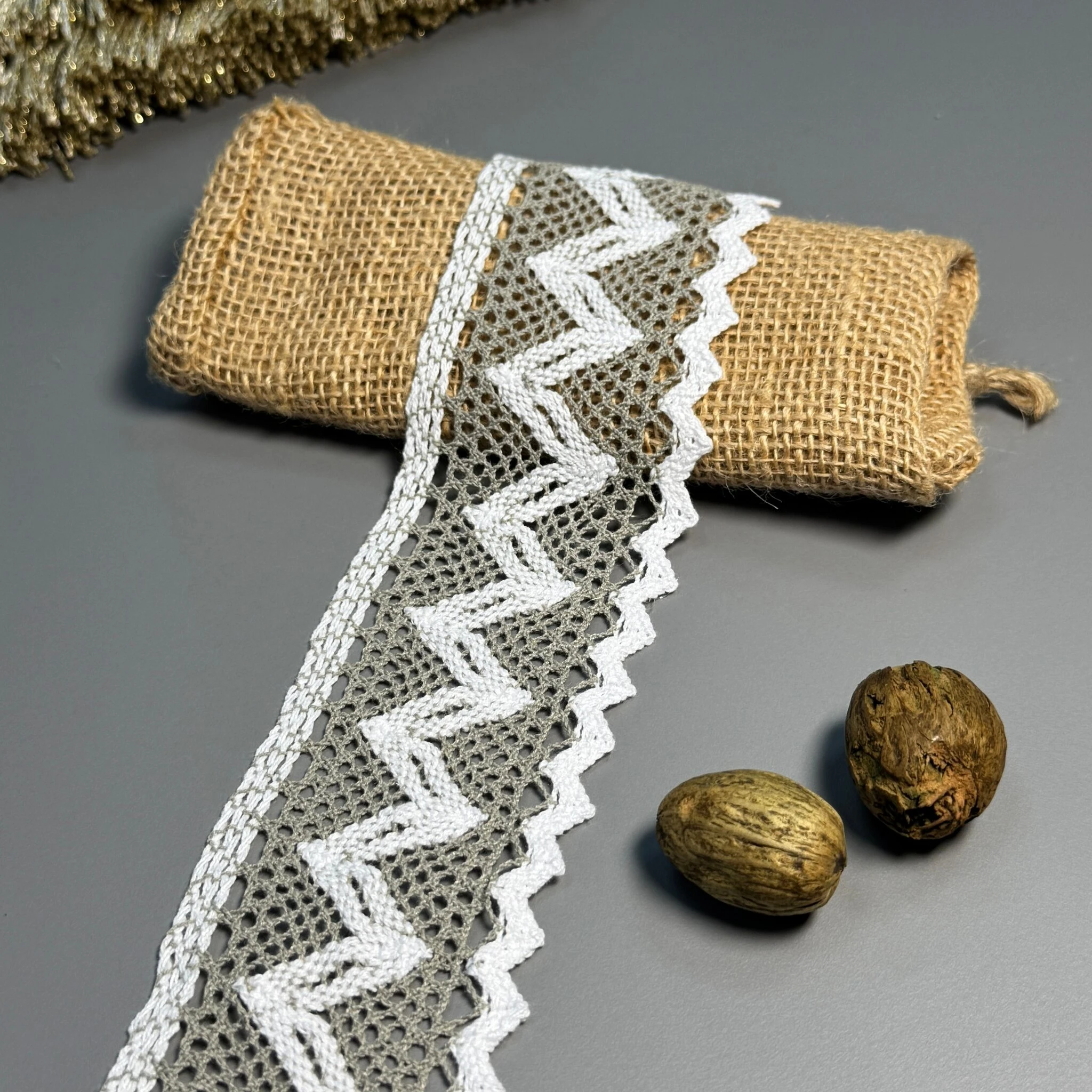 Мереживо макраме А 6442 6 см (100 ярдів/91,4 м), темно бежевий+білий