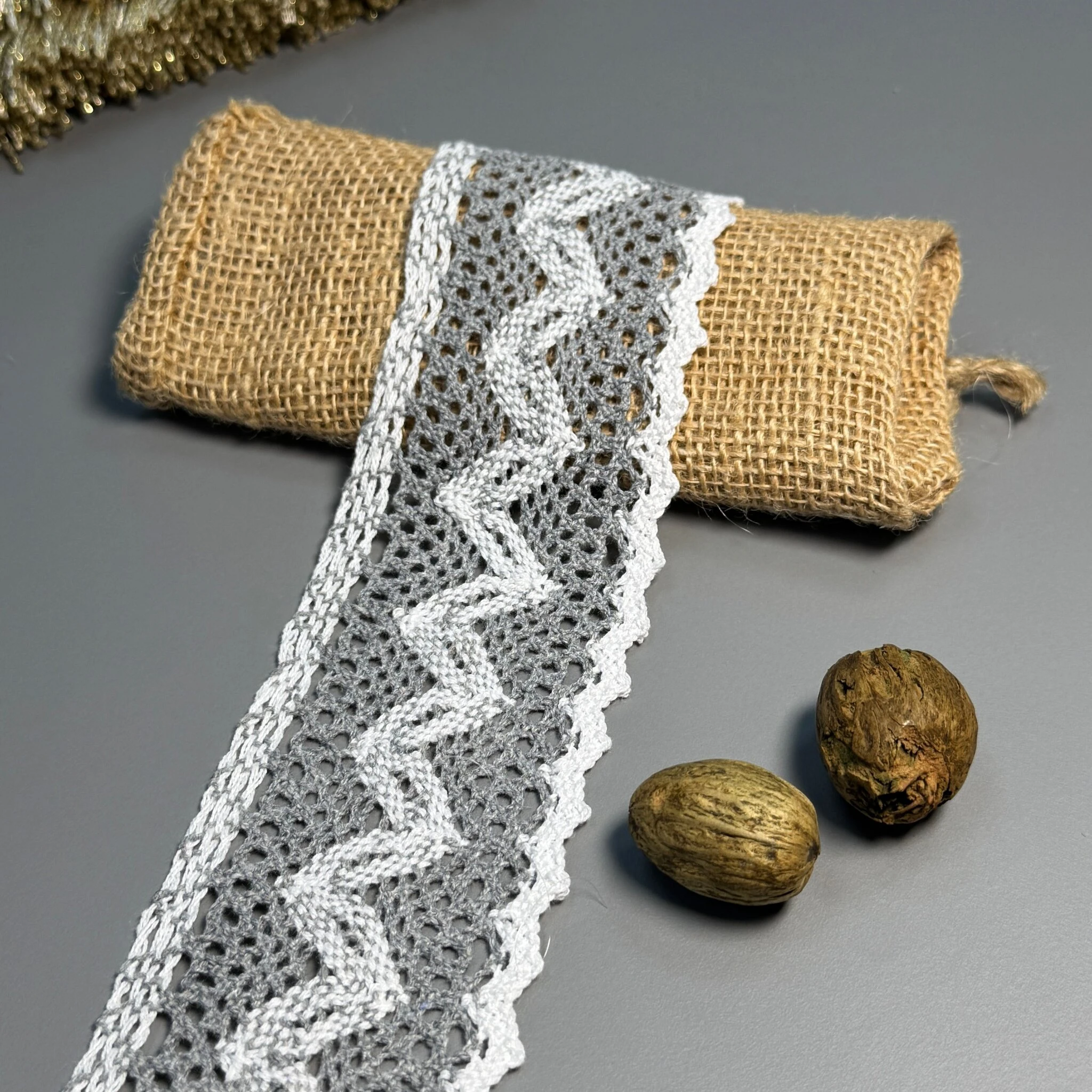 Мереживо макраме А 6442 6 см (50 ярдів/45,7 м.), сірий+білий