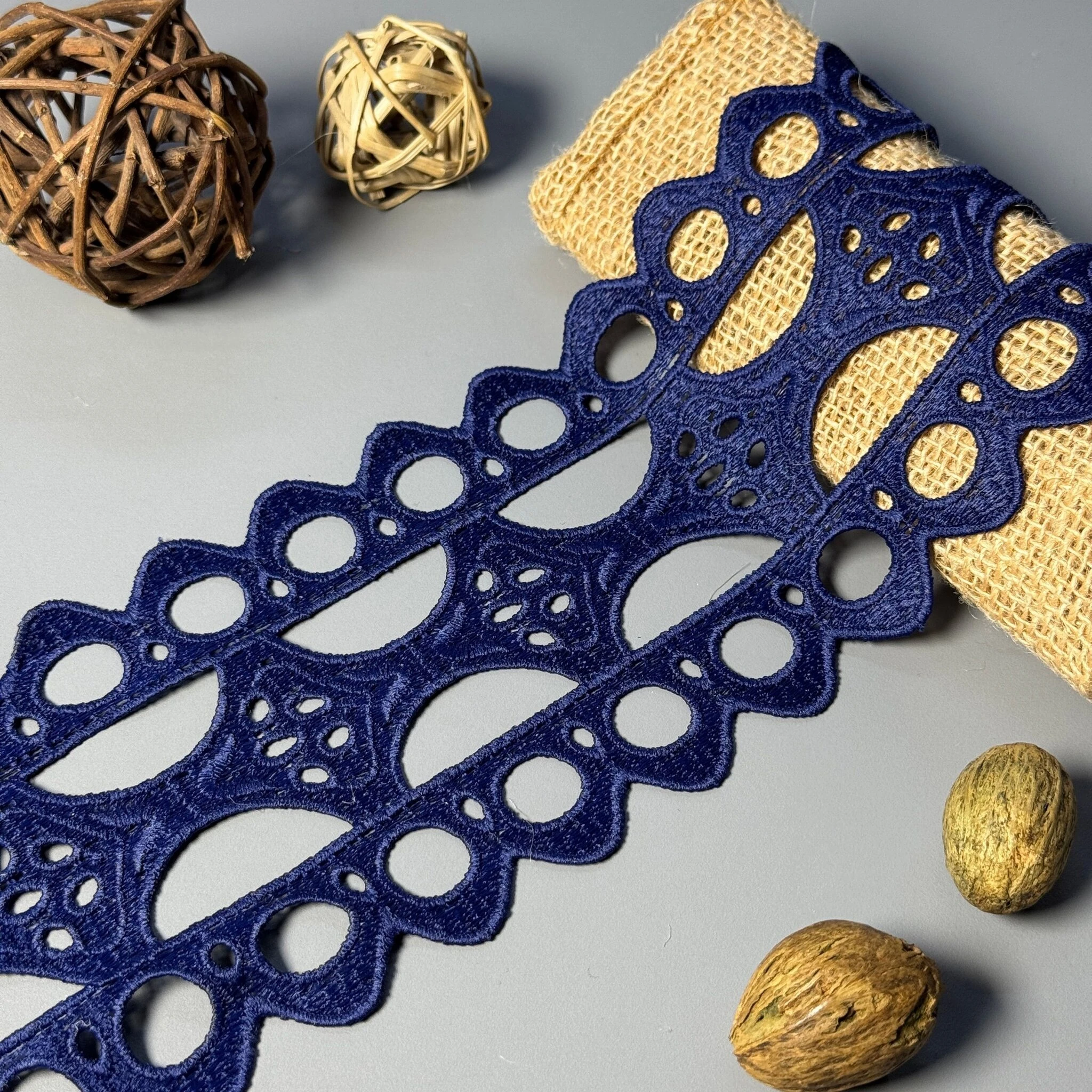 Мереживо поліестер – декоративний матеріал з синтетичного волокна, що відзначається високою зносостійкістю та стабільністю форми. Поліестер не схильний до деформацій, не розтягується і не мнеться, що робить мереживо придатним для частого використання.