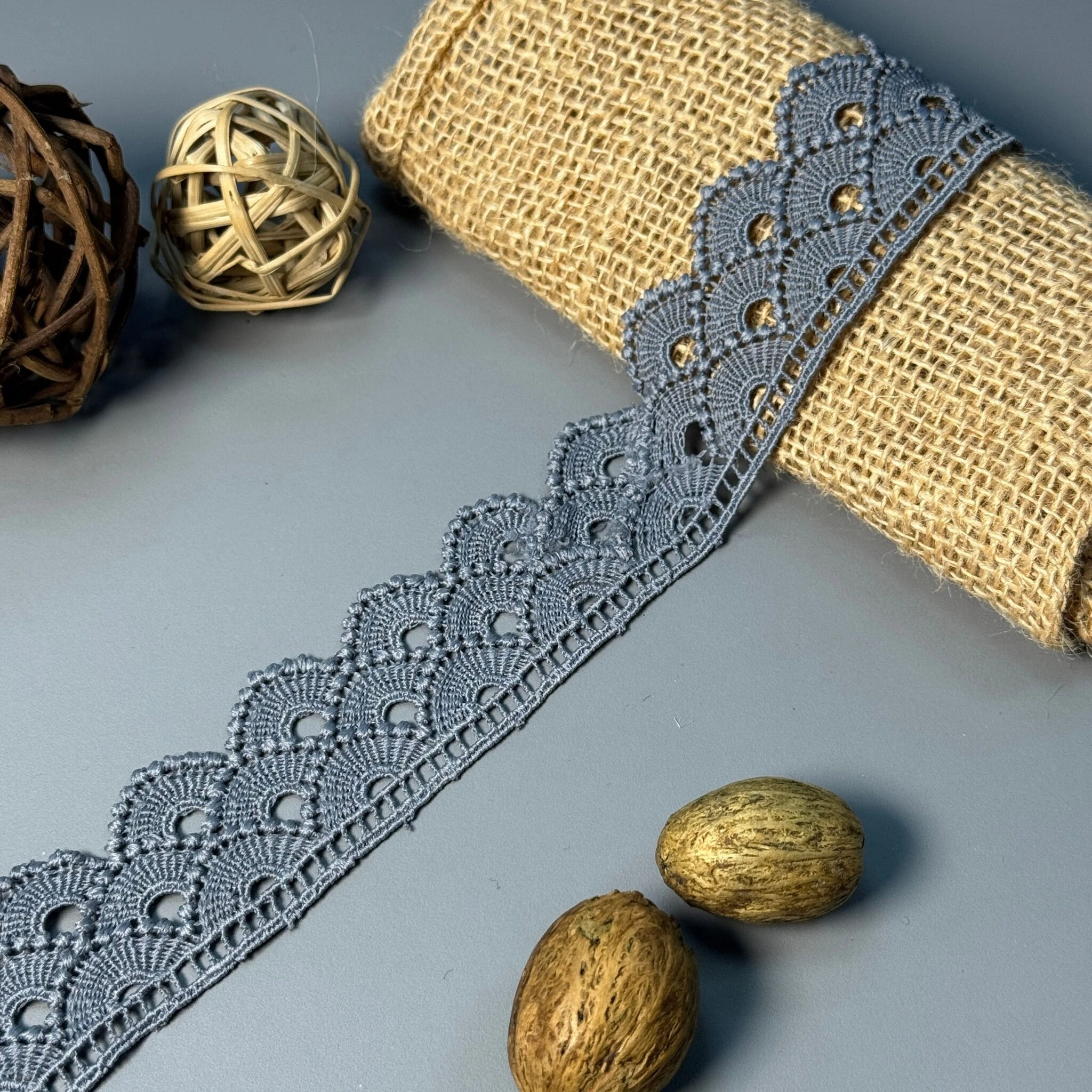 Мереживо поліестер 2 4 см.(19.7 метрів), сірий (19.7 метрів)