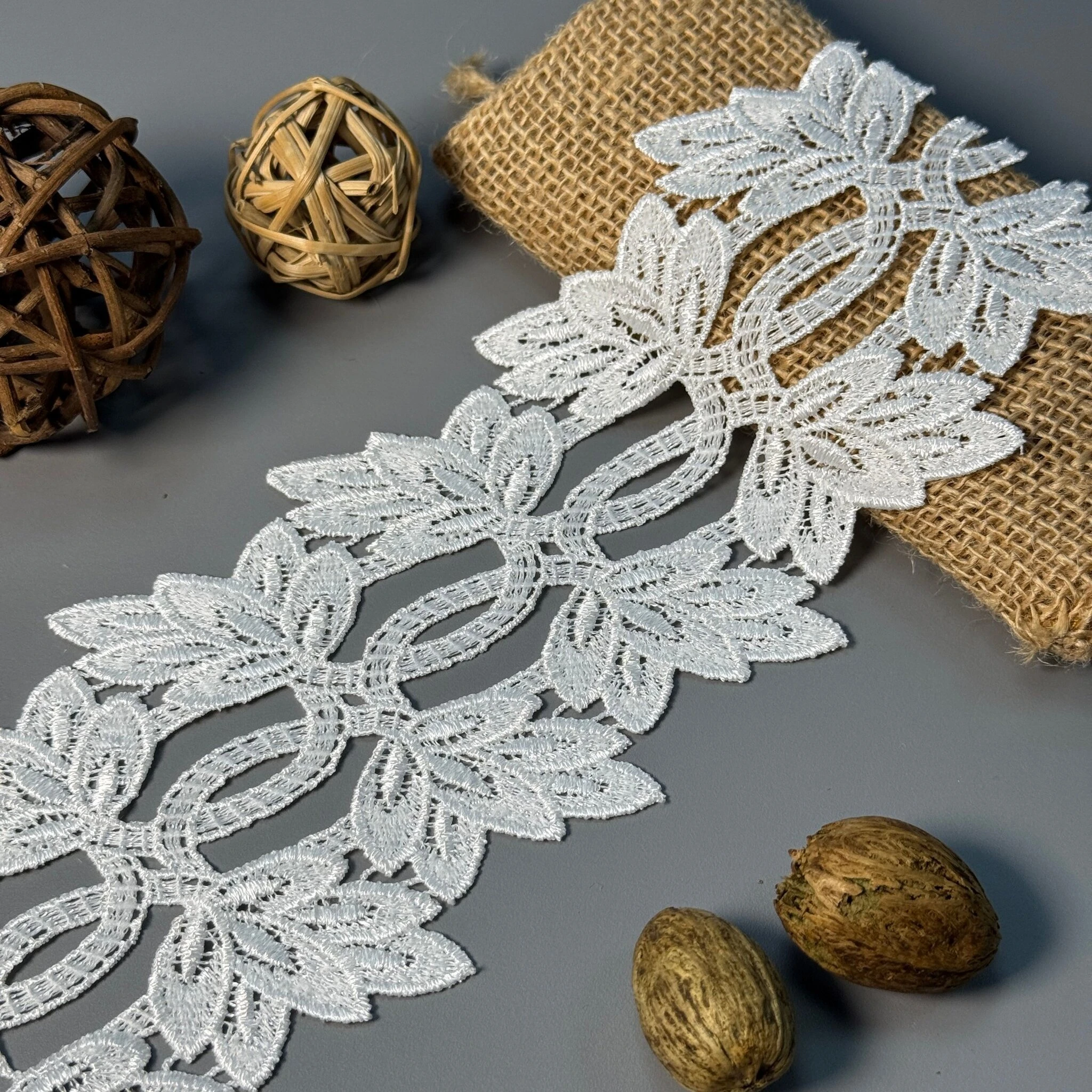 Мереживо поліестер – декоративний матеріал з синтетичного волокна, що відзначається високою зносостійкістю та стабільністю форми. Поліестер не схильний до деформацій, не розтягується і не мнеться, що робить мереживо придатним для частого використання.