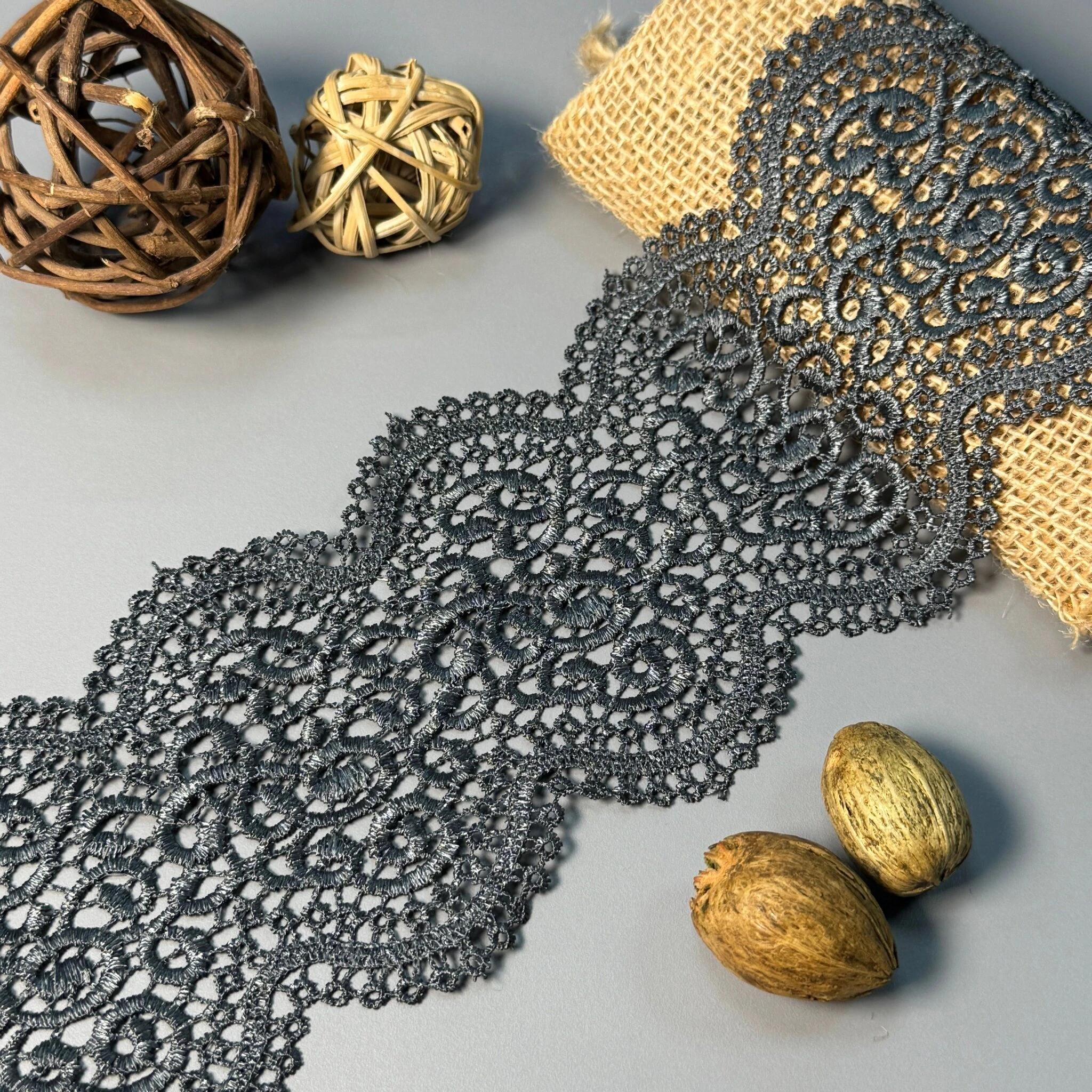 Мереживо поліестер 37 11 см.(20-22 метрів), темний сірий (20 метрів)
