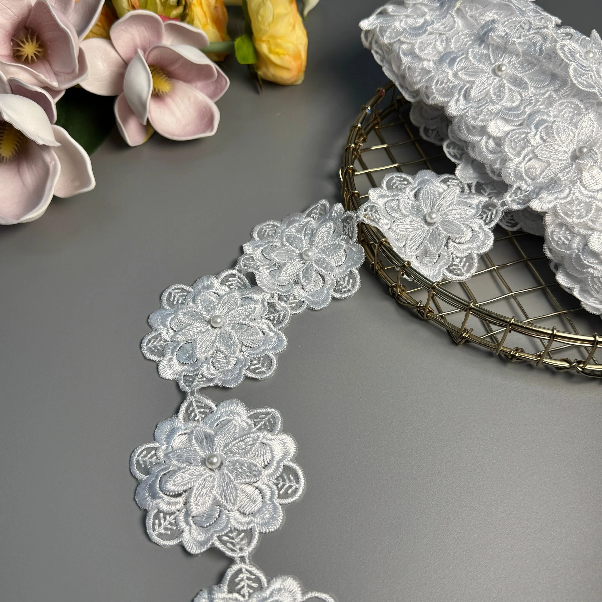 Мереживо поліестер 3D J115 (10 ярдів/9.1 м.), білий