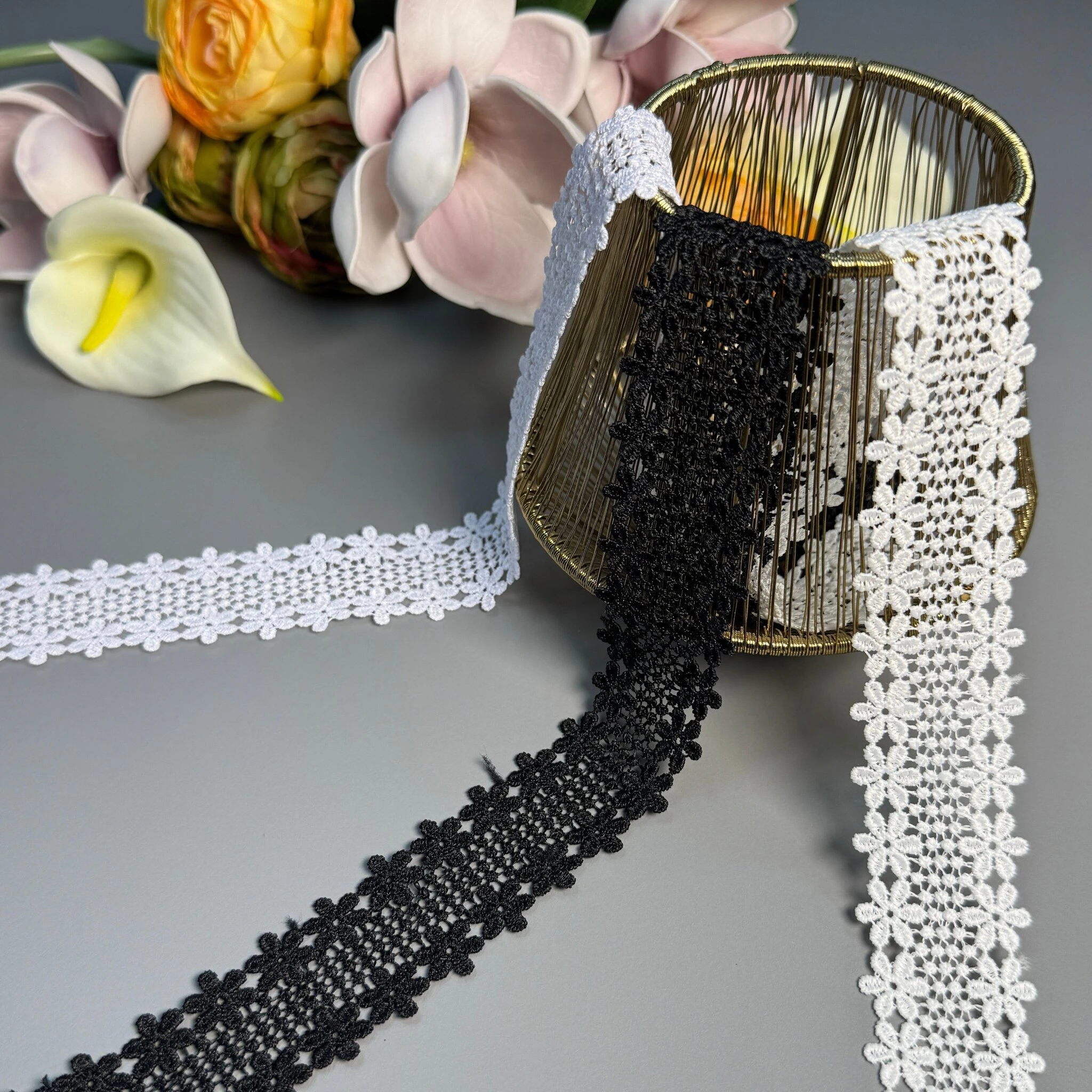 Мереживо поліестер – декоративний матеріал з синтетичного волокна, що відзначається високою зносостійкістю та стабільністю форми. Поліестер не схильний до деформацій, не розтягується і не мнеться, що робить мереживо придатним для частого використання.