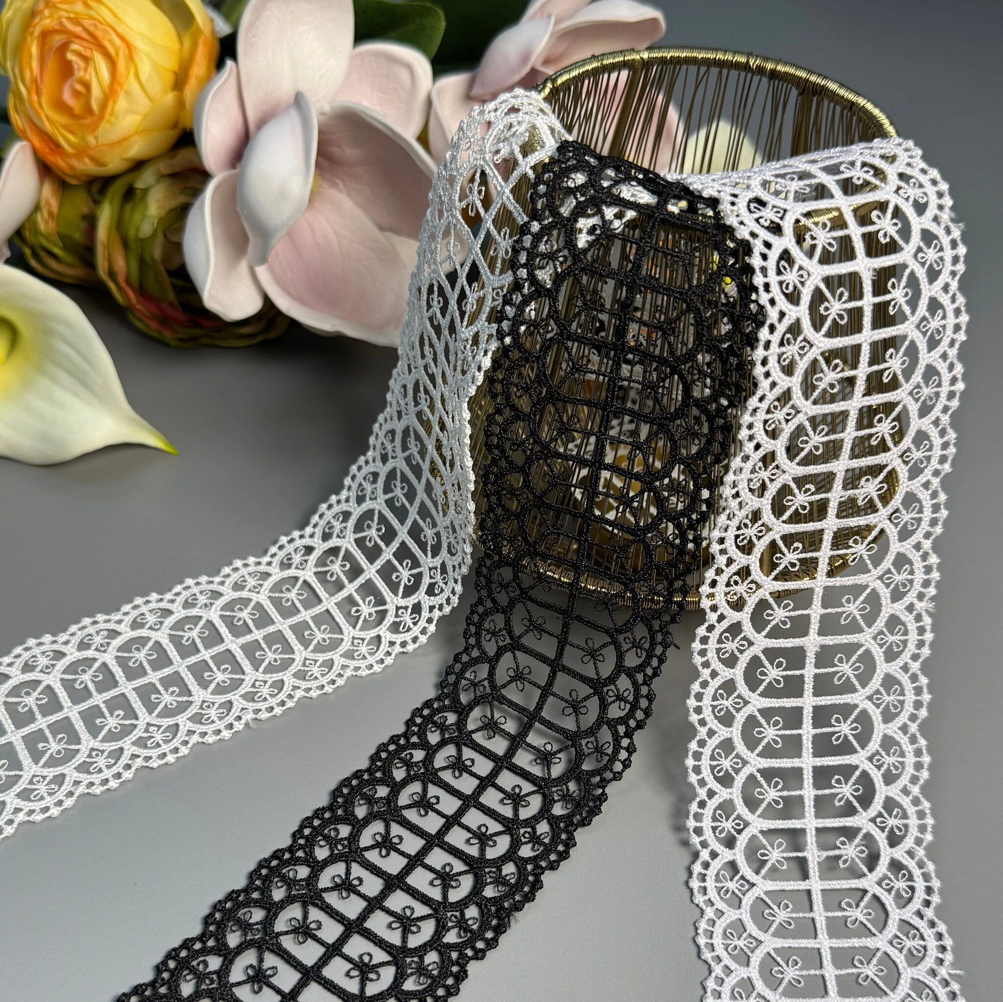 Мереживо поліестер – декоративний матеріал з синтетичного волокна, що відзначається високою зносостійкістю та стабільністю форми. Поліестер не схильний до деформацій, не розтягується і не мнеться, що робить мереживо придатним для частого використання.