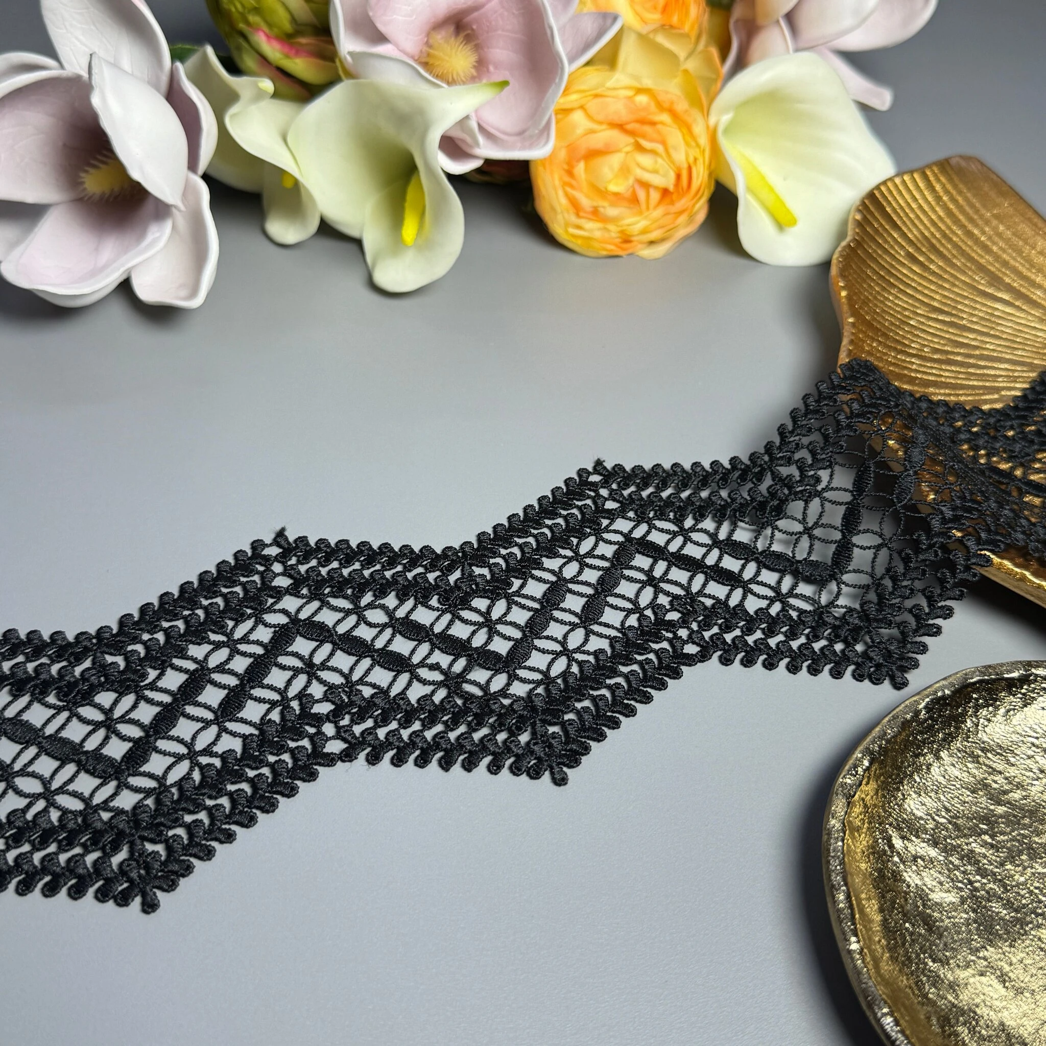 Мереживо поліестер ВВ302652 8,5 см.(15 ярдів/13.5 м.), чорний