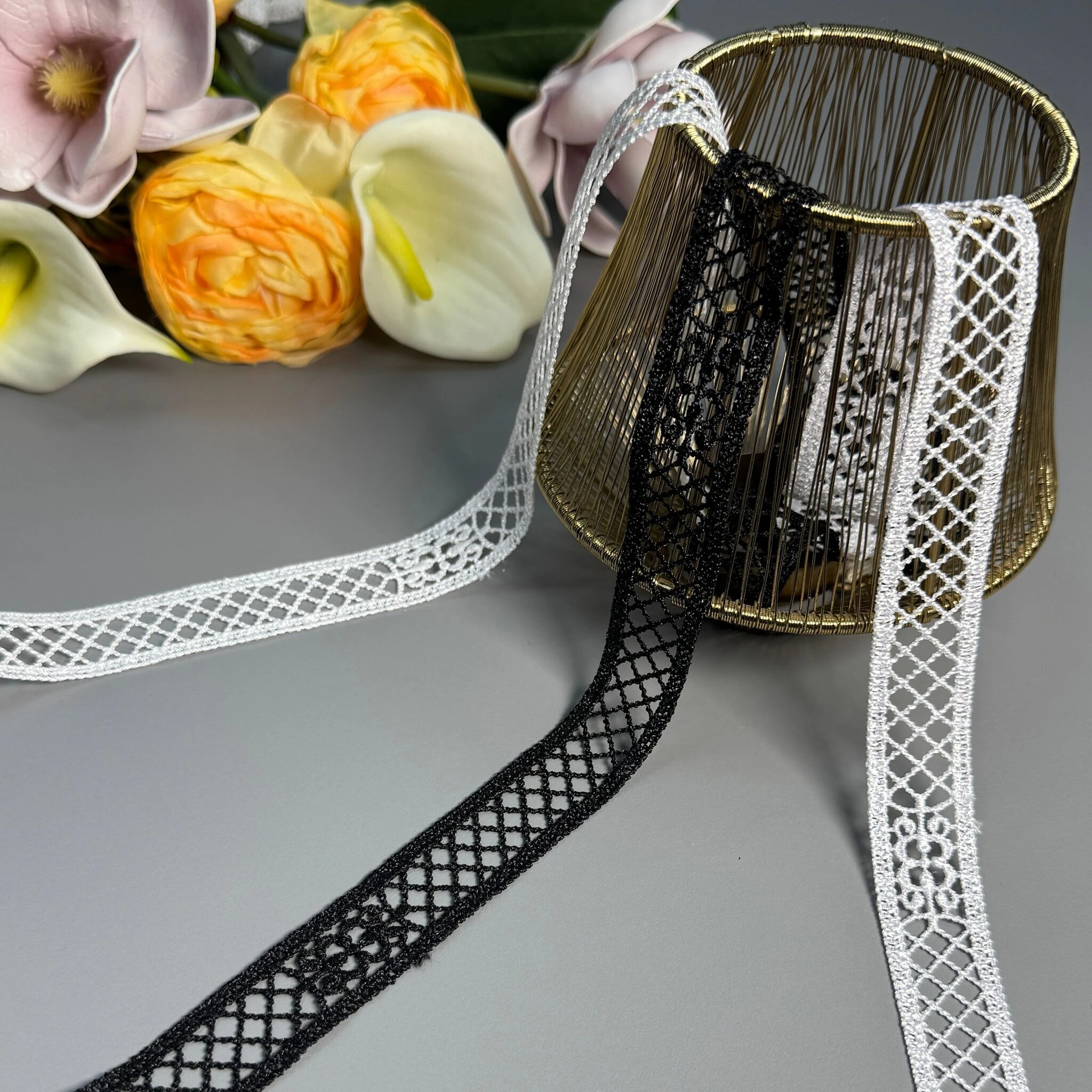Мереживо поліестер – декоративний матеріал з синтетичного волокна, що відзначається високою зносостійкістю та стабільністю форми. Поліестер не схильний до деформацій, не розтягується і не мнеться, що робить мереживо придатним для частого використання.