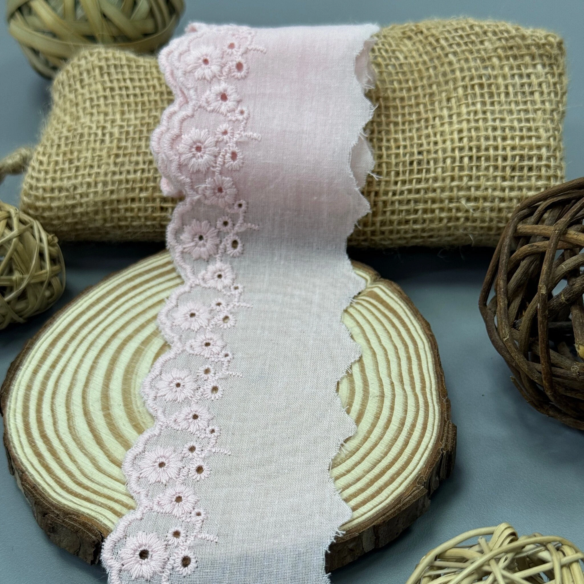 Мереживо прошва 100232 5,5 см.(32 ярдів/29,26 м.), рожевий