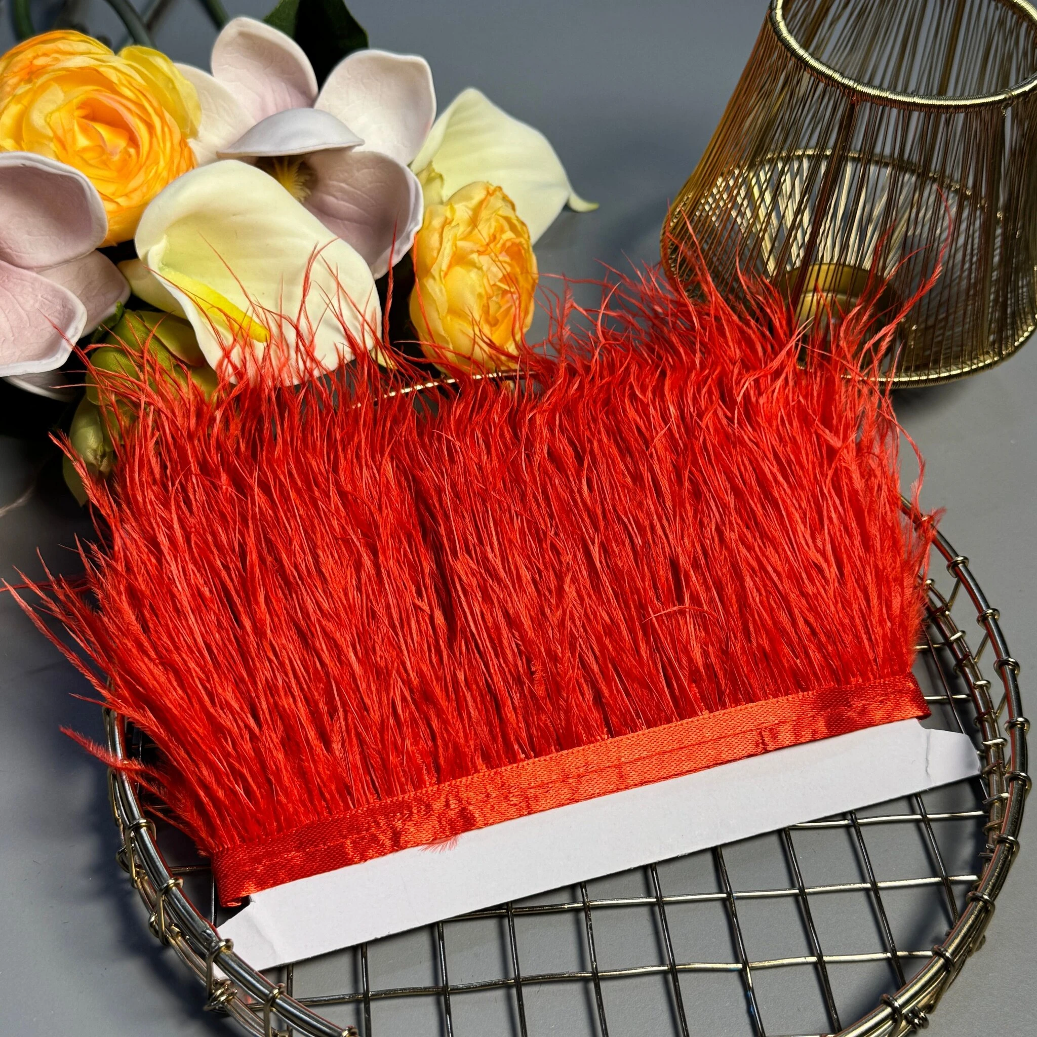 Пір'я на тасьмі 7-10 см (10 метрів), світлий червоний