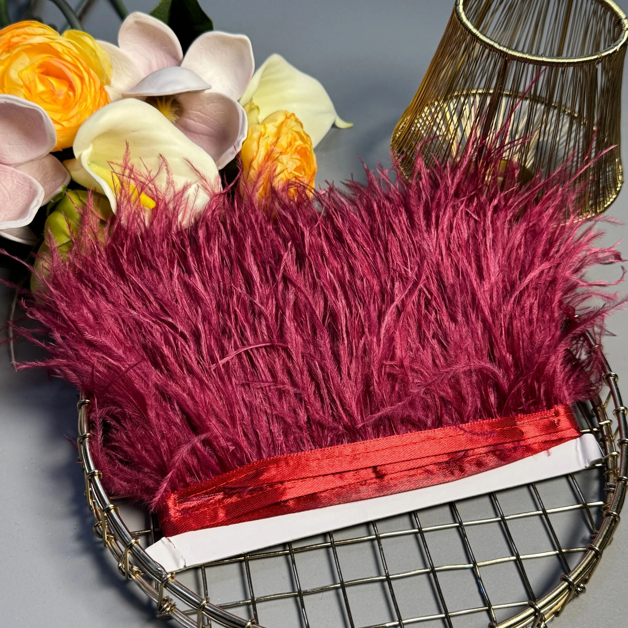 Пір'я на тасьмі 7-10 см (10 метрів), темний бордовий