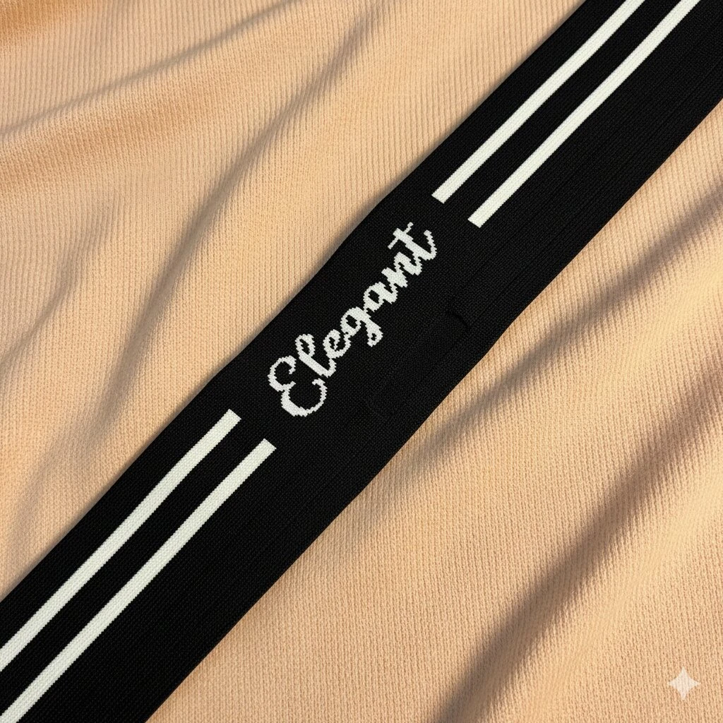 Пояс трикотажний еластичний з написом "ELEGANT" з отворами для шнура – практичний та універсальний елемент для пошиття одягу.