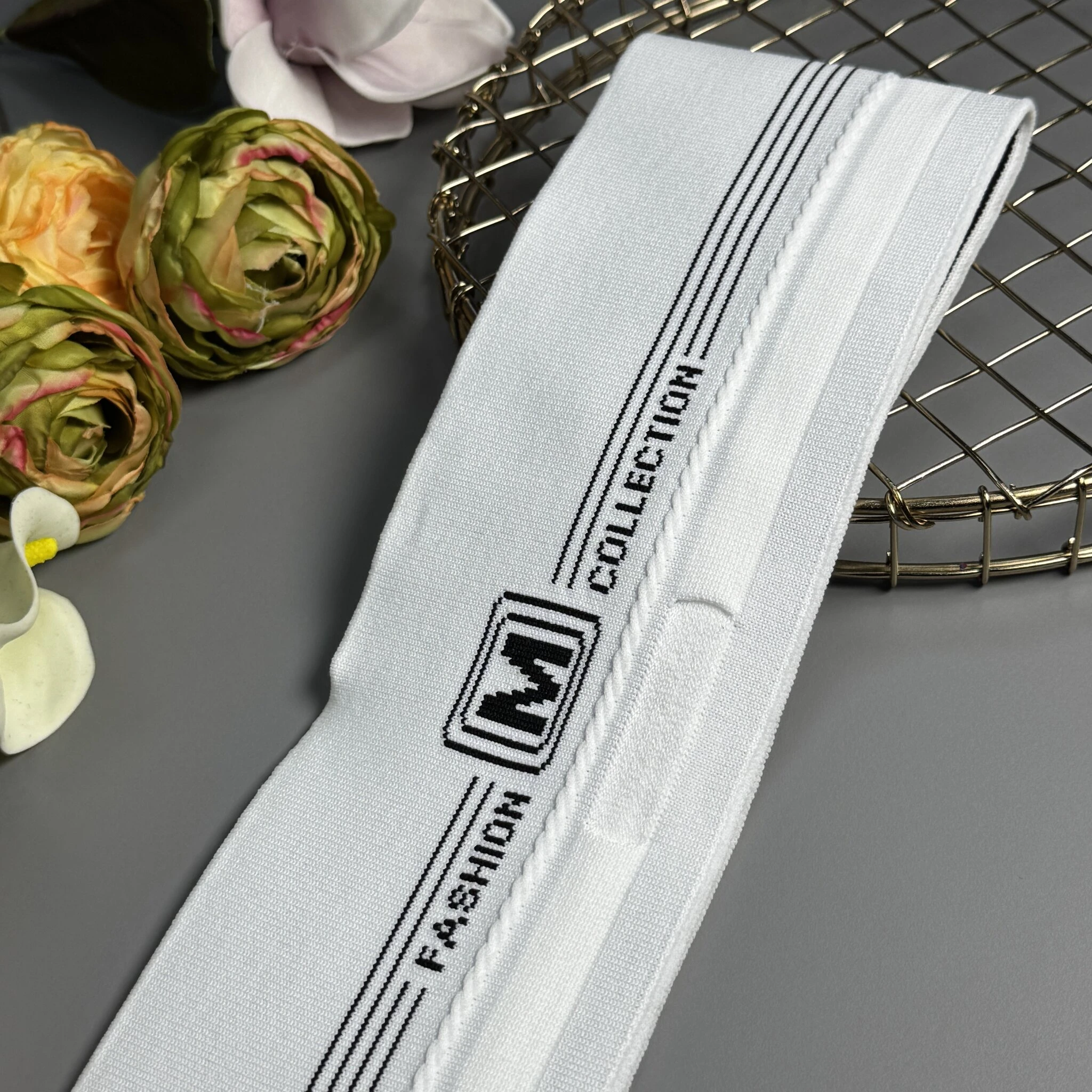 Пояс трикотажний еластичний з написом ""М" FASHION COLLECTION" з отворами для шнура – практичний та універсальний елемент для пошиття одягу.