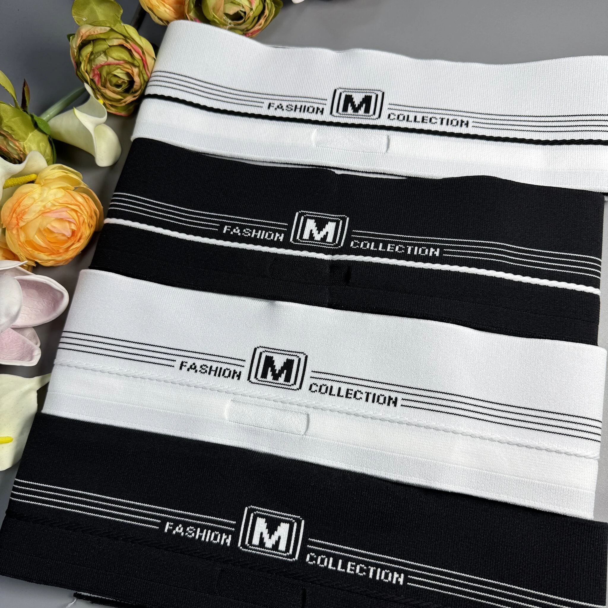Пояс трикотажний еластичний з написом ""М" FASHION COLLECTION" з отворами для шнура – практичний та універсальний елемент для пошиття одягу.