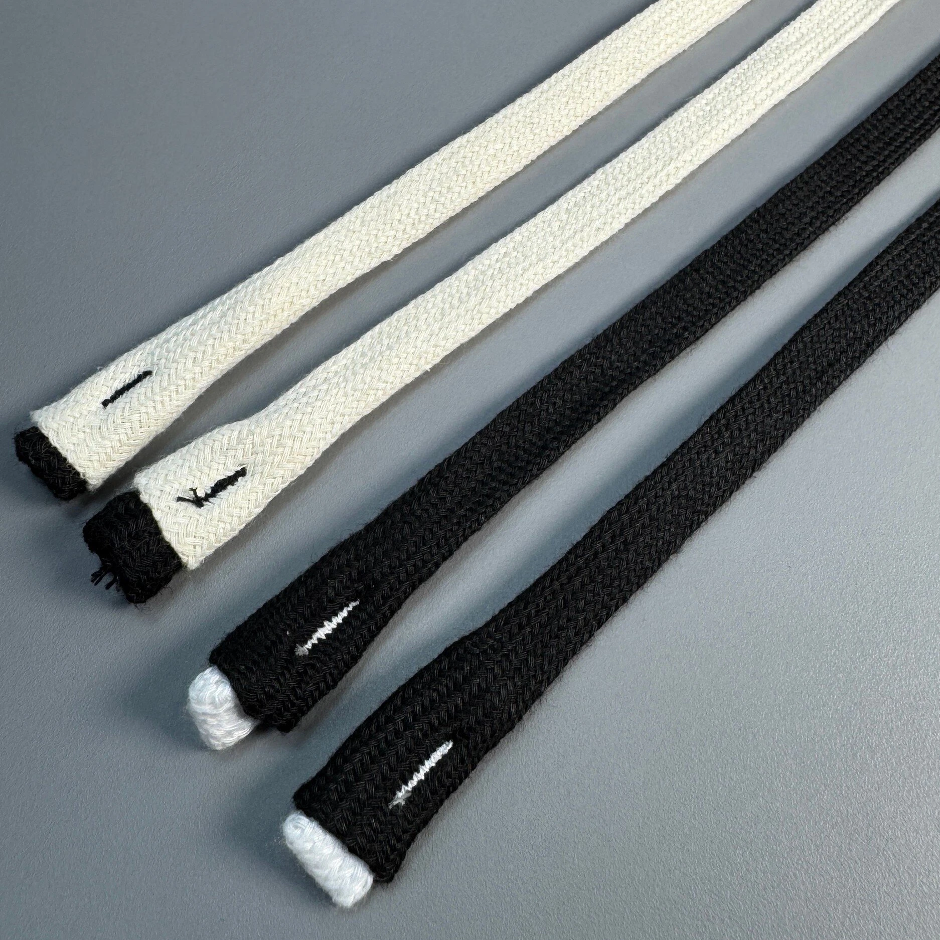 Міцний плоский шнурок шириною 28 мм без наконечників (б/н). Ідеально підходить для штанів, худі чи спортивних кофт. Завдяки широкій формі надійно тримається та додає одягу стильного акценту.