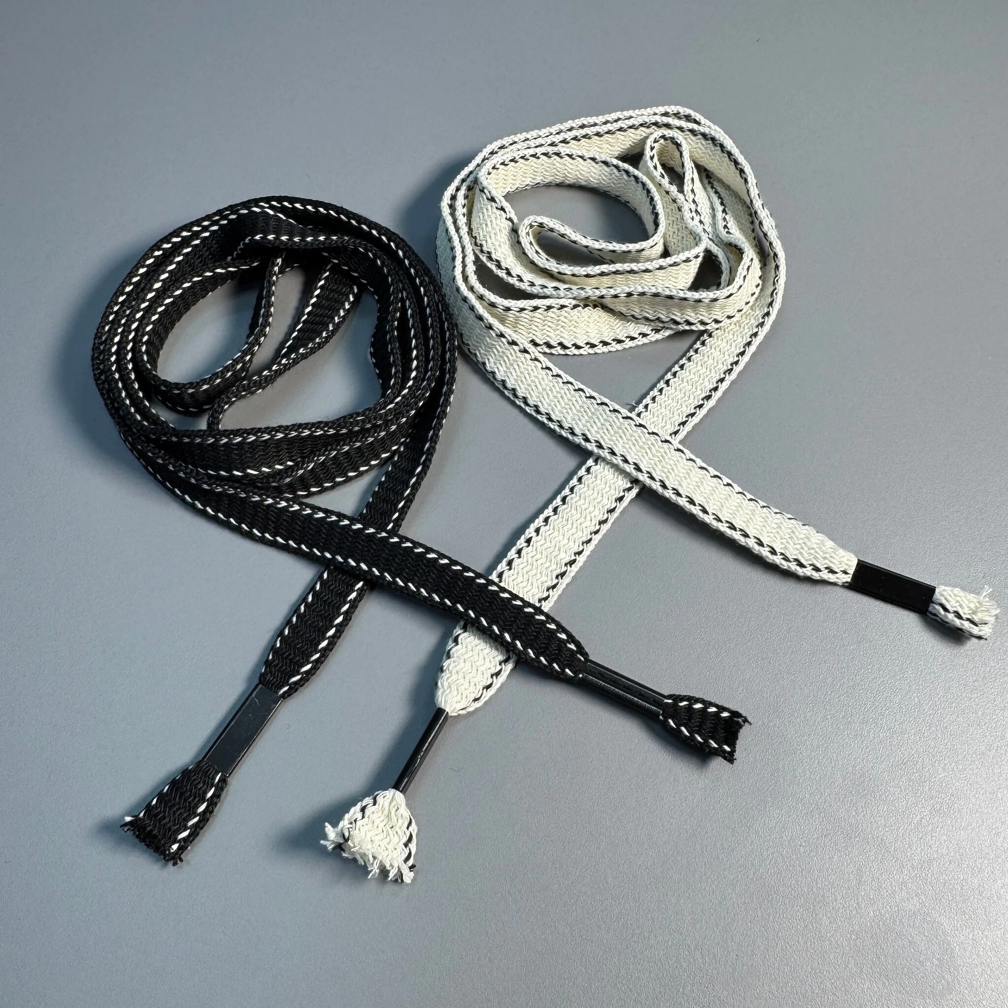 Стильний та міцний плоский широкий шнурок довжиною 140 см. Завдяки формі «плоский широкий» зручно фіксується та не перекручується під час носіння. Ідеально підходить для штанів, худі, спортивних кофт чи курток. Якісний матеріал забезпечує довговічність, а сучасний вигляд надає одягу охайності та завершеного стилю.