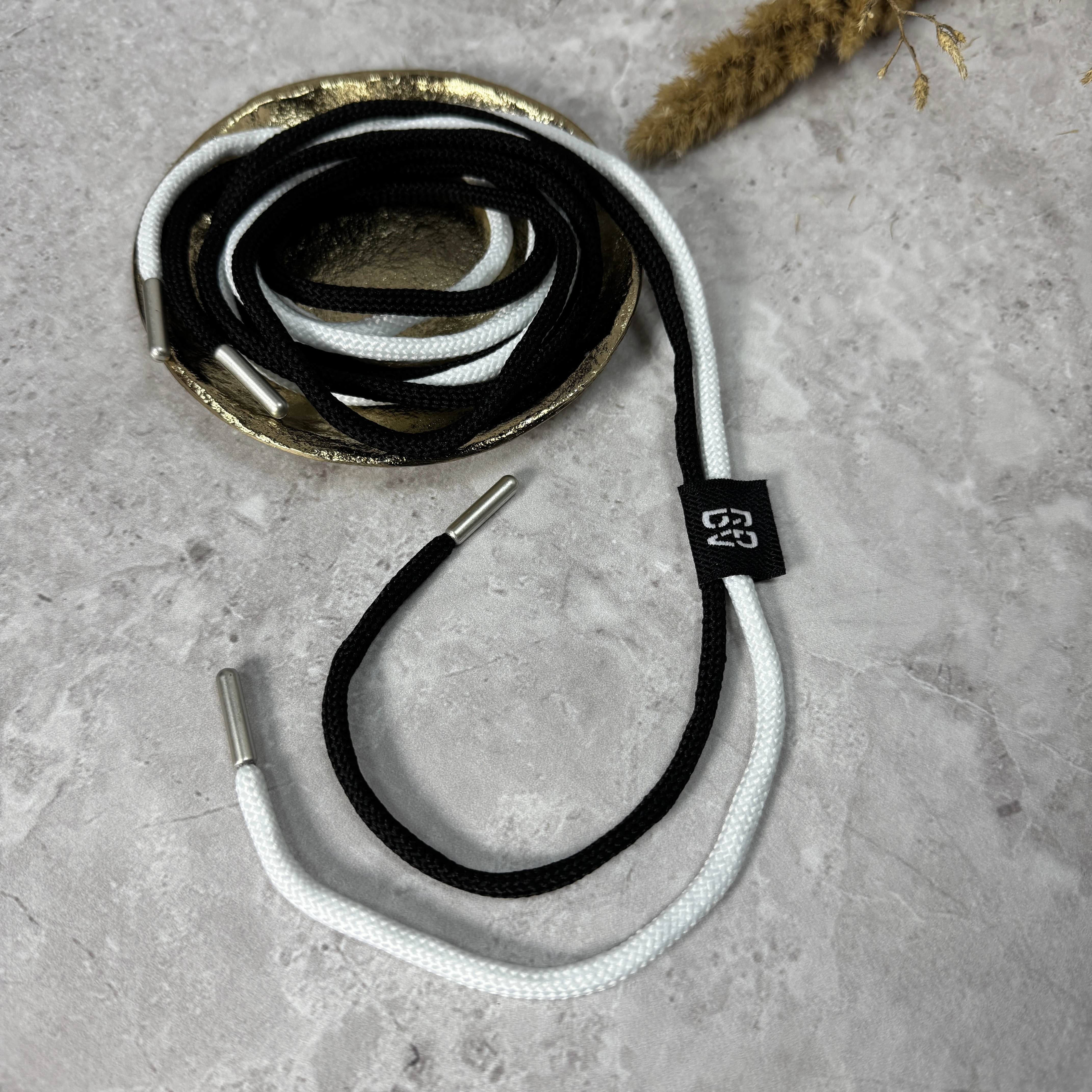 Шнурок в штани круглий подвійний (140 см), чорний+білий