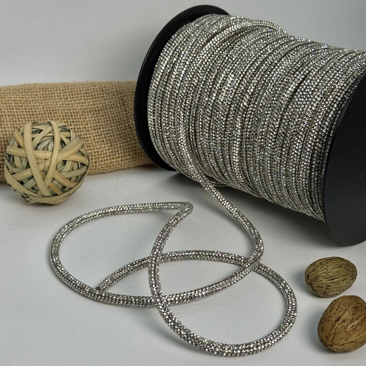 Стразовий шнур 4 мм 8 рядів (50 м), срібло WHITE