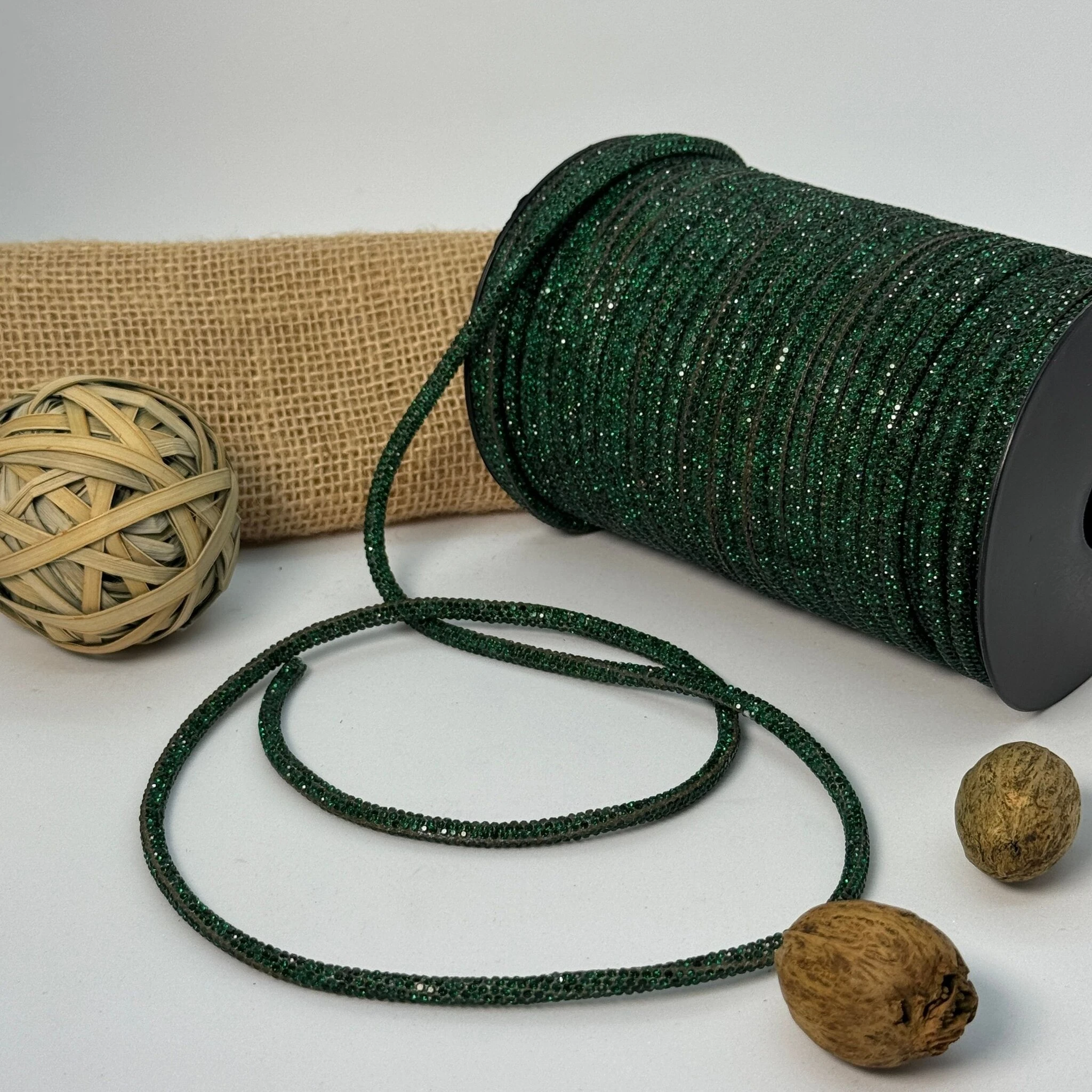 Стразовий шнур 4 мм 8 рядів (50 м), зелений GREEN