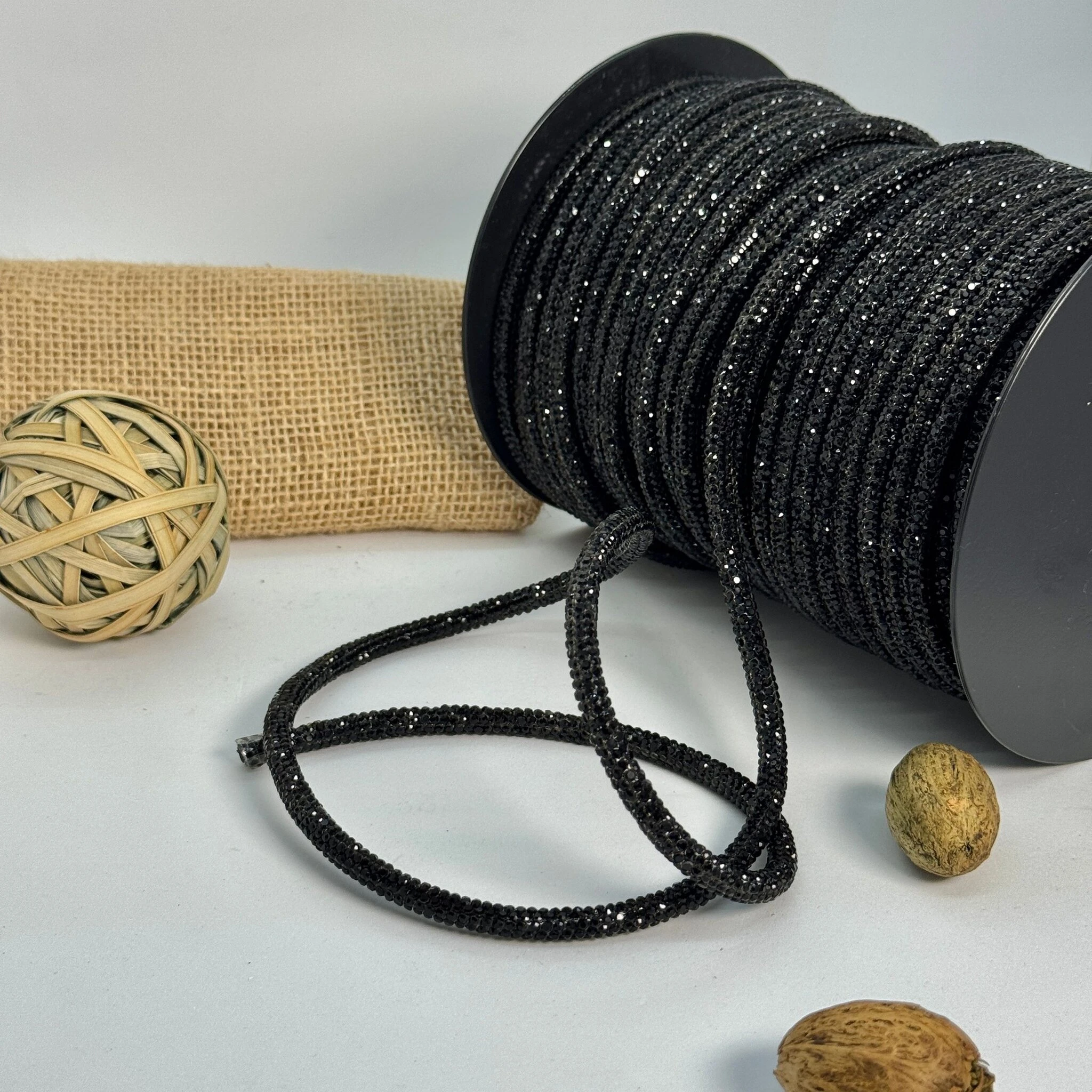 Стразовий шнур 6 мм 8 рядів (50 м), чорний