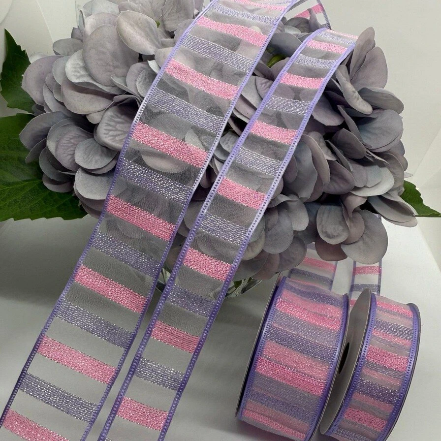 Стрічка декоративна органзова 4 см (5*20 ярдів/18,28 м.), №11 фіолетовий+рожевий