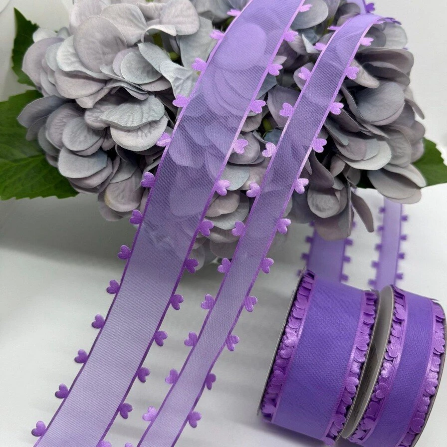 Стрічка декоративна з сердечками 2.5 см (5*20 ярдів/18,28 м.), фіолетовий